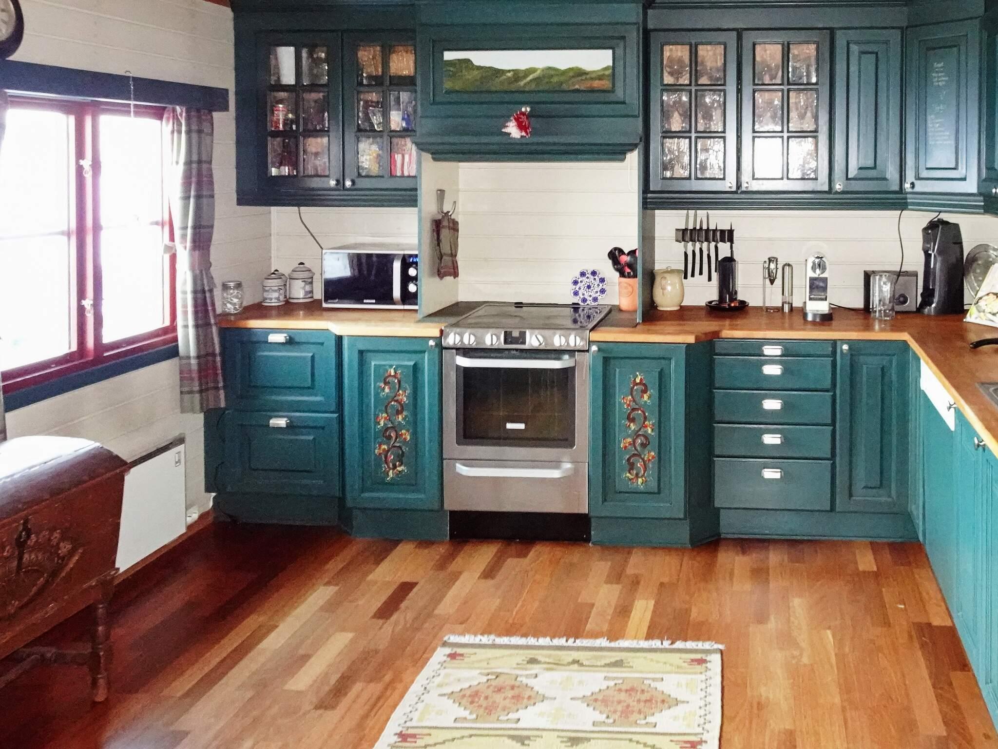 Im Erdgeschoss des Ferienhauses finden Sie einen gefliesten Flur mit Garderobe mit Schiebetüren. Bad mit WC, Dusche und Waschmaschine. Zweites Bad mit Dusche und Zugang zur elektrisch betriebenen Sauna. Angenehme Fußbodenheizung in beiden Bädern. Küche mit offener Verbindung zur Essecke. Gemütliche Sitzbank und Holzofen in der Küche. Essecke mit Platz für 10 Gäste. Zwei Stufen weiter unten liegt das Kaminzimmer mit großem, offenem Kamin, Sitzecke und Fernseher. Außerdem Schlafzimmer mit Doppelbett. Kurze Treppe hinauf in die obere Etage mit zwei Schlafzimmern mit insgesamt acht Schlafplätzen, verteilt auf vier Doppelbetten. Kurze Leiter hinauf zum Hems mit zwei Sofas. Es gibt zwei Smart-TVs im Haus; eines im Kaminzimmer, das zweite oben auf dem Hems. Auf beiden kann man eigene Anbieter streamen. Zudem Abo von Altibox vorhanden.