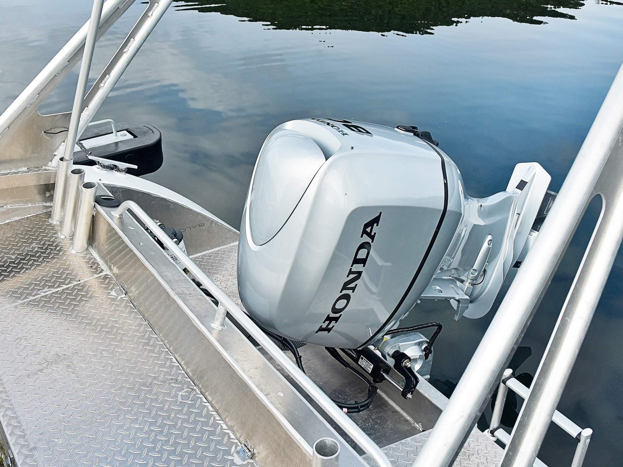 Zudem liegen am Schwimmsteg, etwa 100 m vom Ferienhaus, ein 18 Boot (Typ Rana) mit 20 PS 4-Takt Motor (Marke Yamaha, von 2017, gekennzeichnet mit 9,9 PS, Leistung bis 20 PS) bereit. Zusätzlich kann ein 15 Fuß Boot (Typ Rana) mit 6 PS 4-Takt Motor angebietet werden.