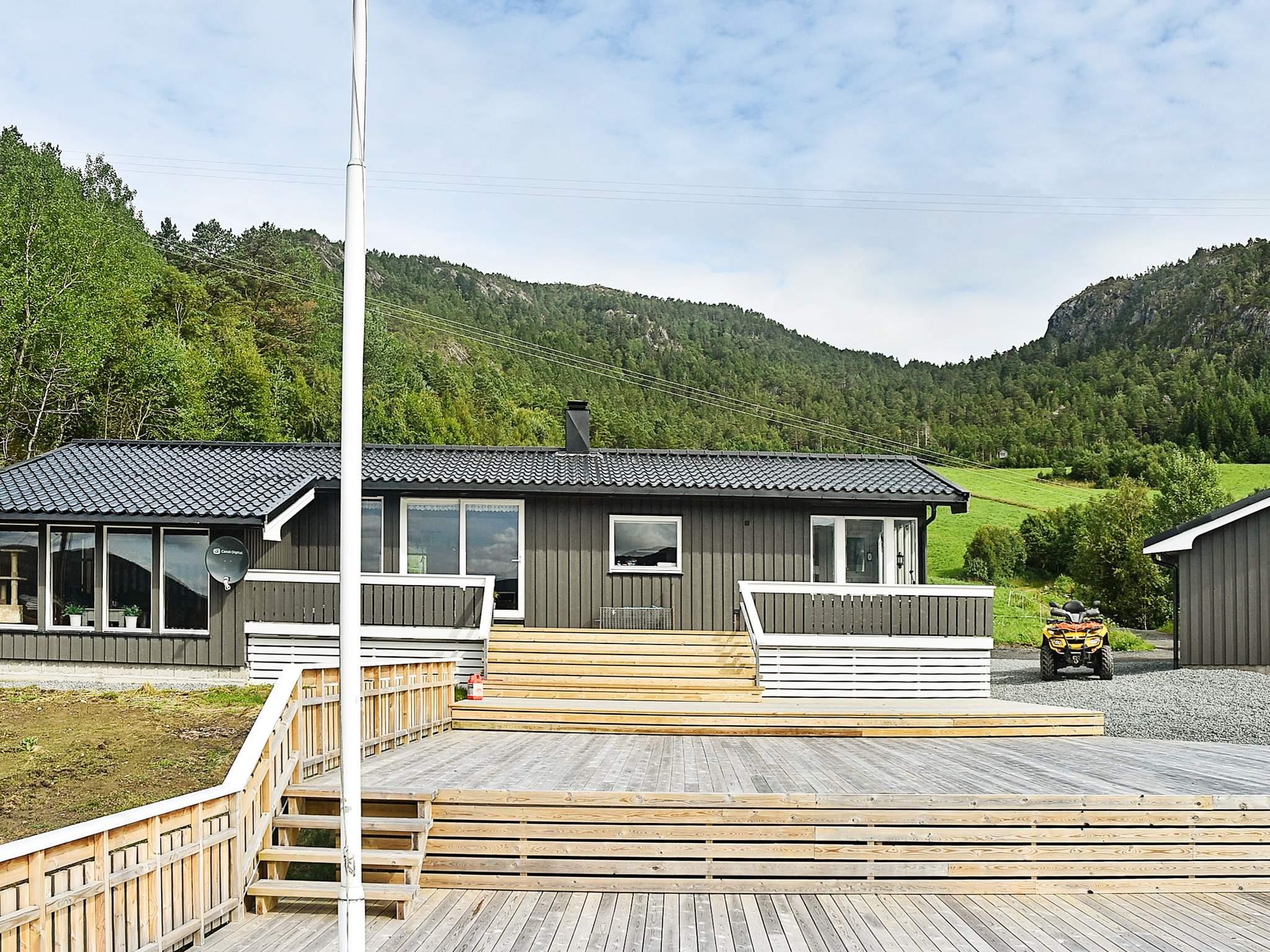 Mit herrlicher Panorama-Aussicht zum Åstfjord und dem umliegenden Gebirge von seiner insgesamt 192 m² großen Holzterrasse bietet dieses Ferienhaus einen ansprechenden Rahmen für einen erholsamen Familienurlaub am Wasser!