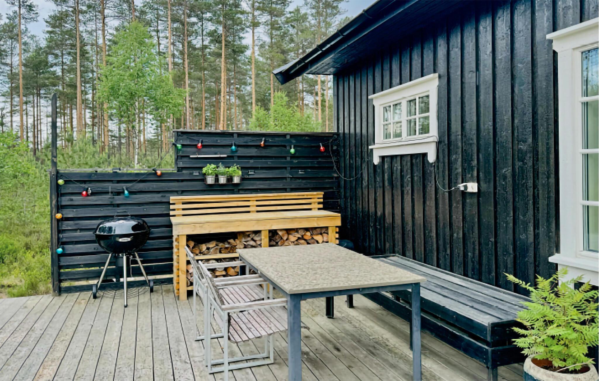Nehmen Sie eine Auszeit vom Alltag und kommen zur Ruhe in diesem Ferienhaus, das einen erlebnisreichen Urlaub verspricht. Die großflächige Unterkunft auf zwei Ebenen eignet sich perfekt für die Großfamilie. Im Inneren des Hauses empfängt Sie eine heimelige Atmosphäre, in der Sie sich vom ersten Tag an wohlfühlen werden. Wenn Sie nach Ihren Ausflügen und Aktivitäten zurückkommen, können Sie gemeinsam kochen und Gesellschaftsspiele in der gemütlichen Sofa-Ecke spielen, während die Flammen im Kaminofen prasseln. Oder vielleicht ziehen Sie einen Filmabend im Wohnraum im ersten Geschoss vor? Im ungestörten Garten können Ihre Kinder auf dem Trampolin springen und es gibt tolle Bademöglichkeiten und einen Sandstrand direkt unterhalb der Hütte.