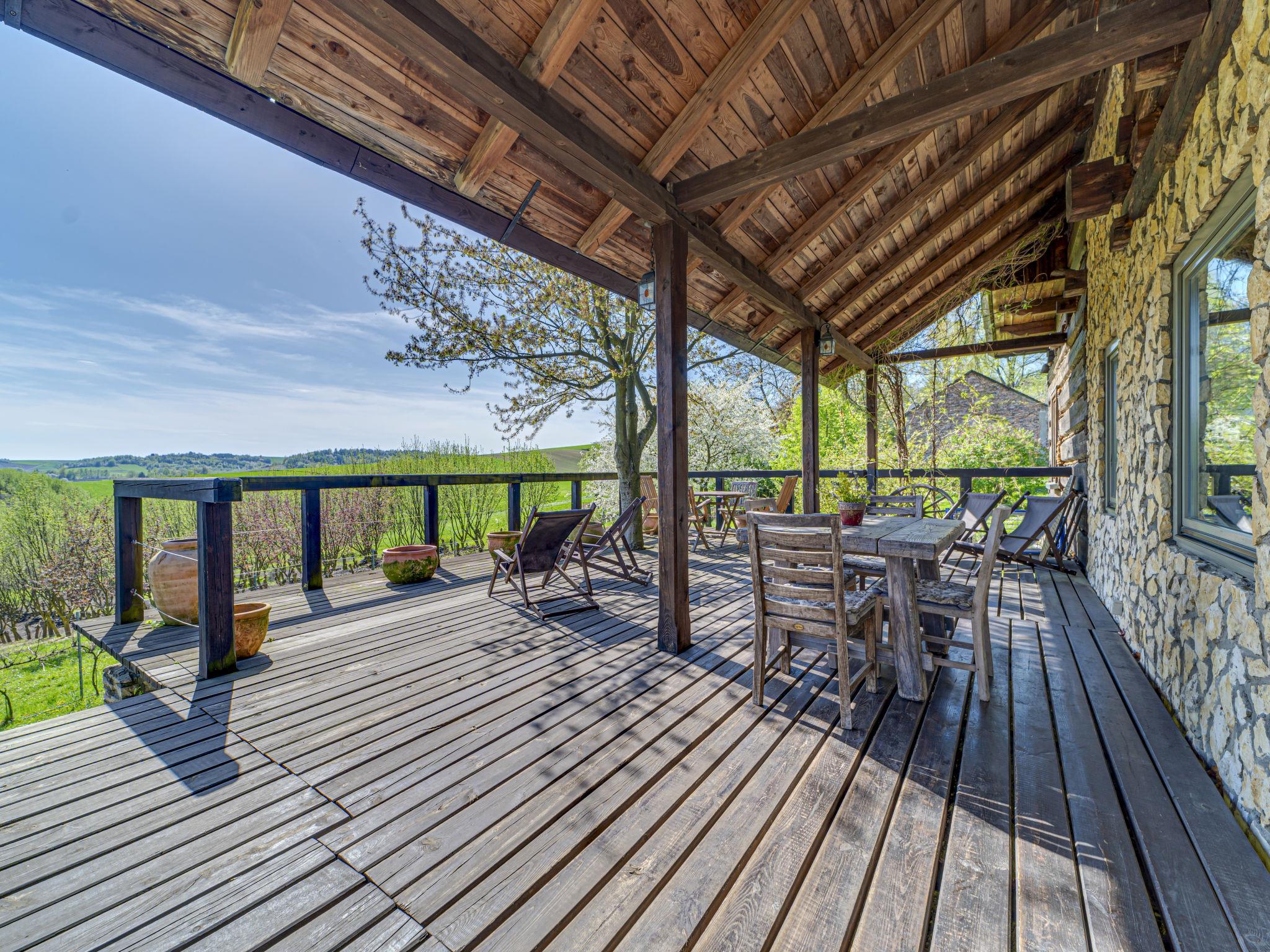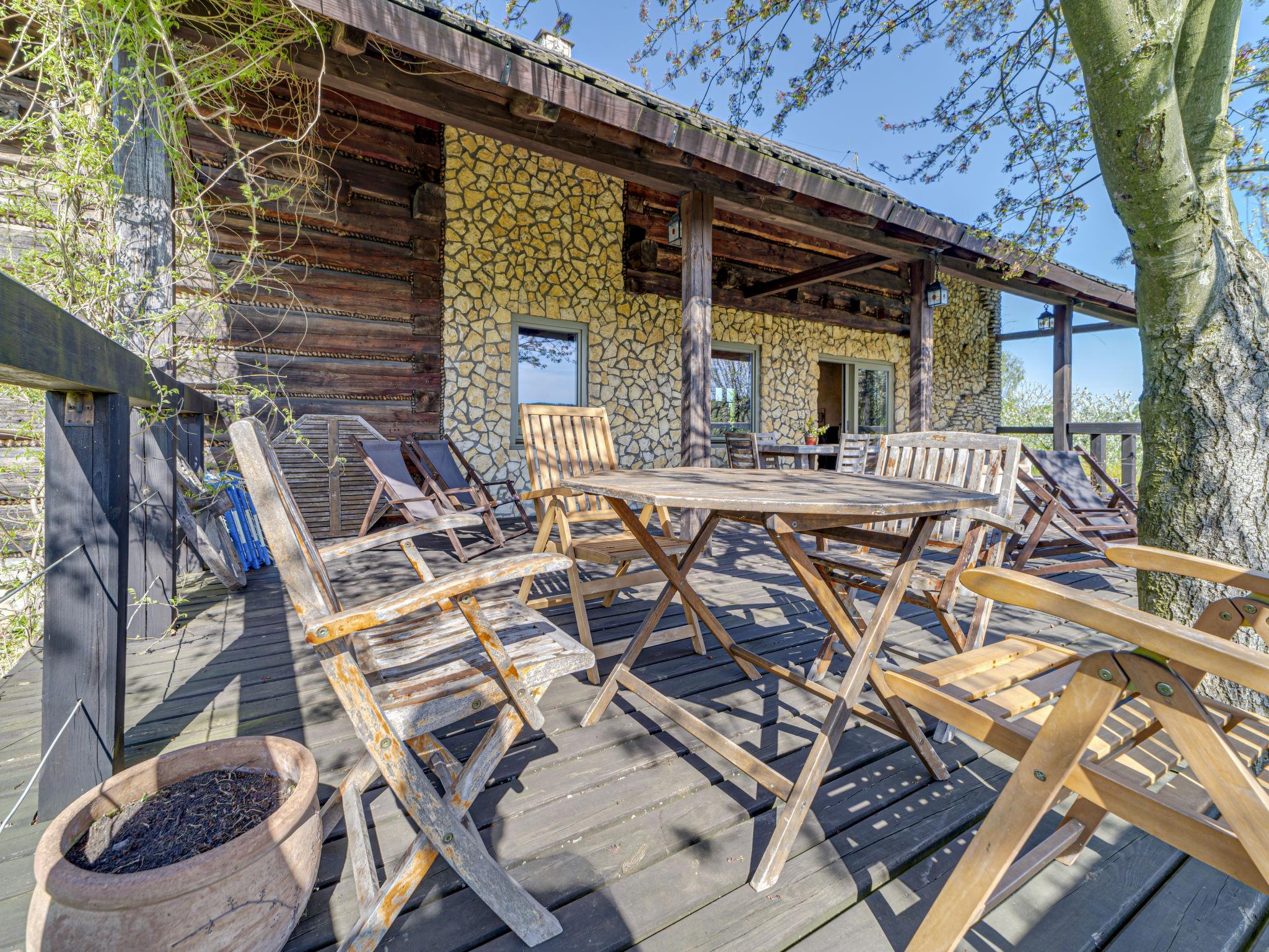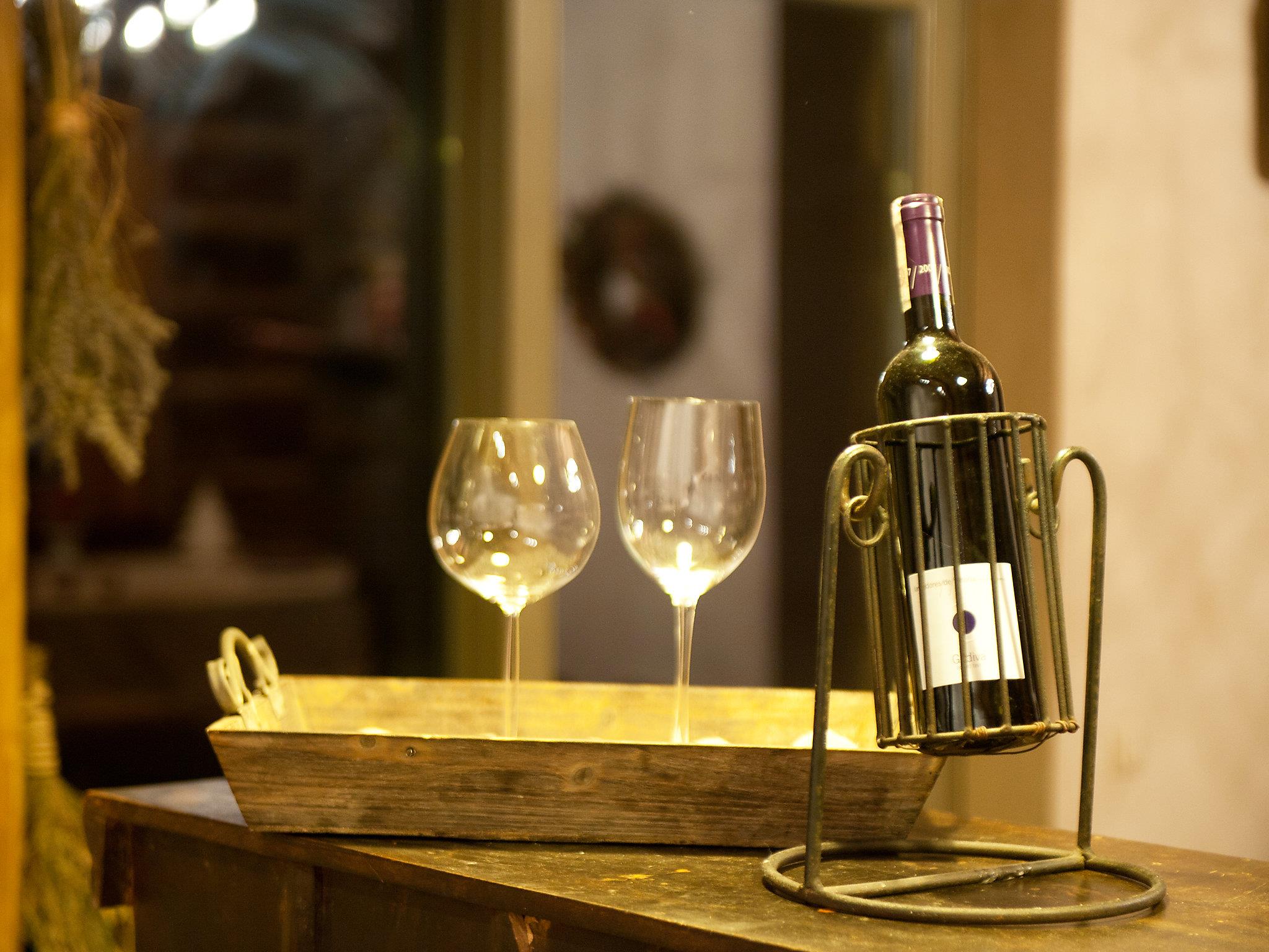 5-Zimmer-Haus 154 m2 auf 2 Stockwerken. Offenes grosses Wohn-/Esszimmer 40 m2 mit Radio. Ausgang zur Terrasse. 1 Zimmer 20 m2 mit 1 Diwanbett, 1 franz. Bett und Dusche/WC. Offene Küche (Backofen, Geschirrspüler, 4 Glaskeramikplatten, Tiefkühler, elektrische Kaffeemaschine). Sep. WC. Dachgeschoss: 1 abgeschrägtes Zimmer 20 m2 mit 1 Diwanbett, 1 franz. Bett und Dusche/WC. Abgeschrägtes, verbundenes Zimmer 26 m2 mit 1 Diwanbett, 1 franz. Bett und Dusche/WC. 1 abgeschrägtes Zimmer 6 m2 mit 1 x 2 Etagenbetten. 1 abgeschrägtes Zimmer 8 m2 mit 1 Diwanbett. E-Heizung (extra), Boiler (280 Liter). Terrasse 64 m2. Terrassenmöbel, Liegestühle (6). Schöne Sicht auf das Tal und die Landschaft. Zur Verfügung: Kinderhochstuhl, Babybett bis 3 Jahre, Haartrockner. Internet (Wireless LAN, gratis). Parkplatz beim Haus. Bitte beachten: Nichtraucher-Haus. Maximal 2 Haustiere/Hunde erlaubt.