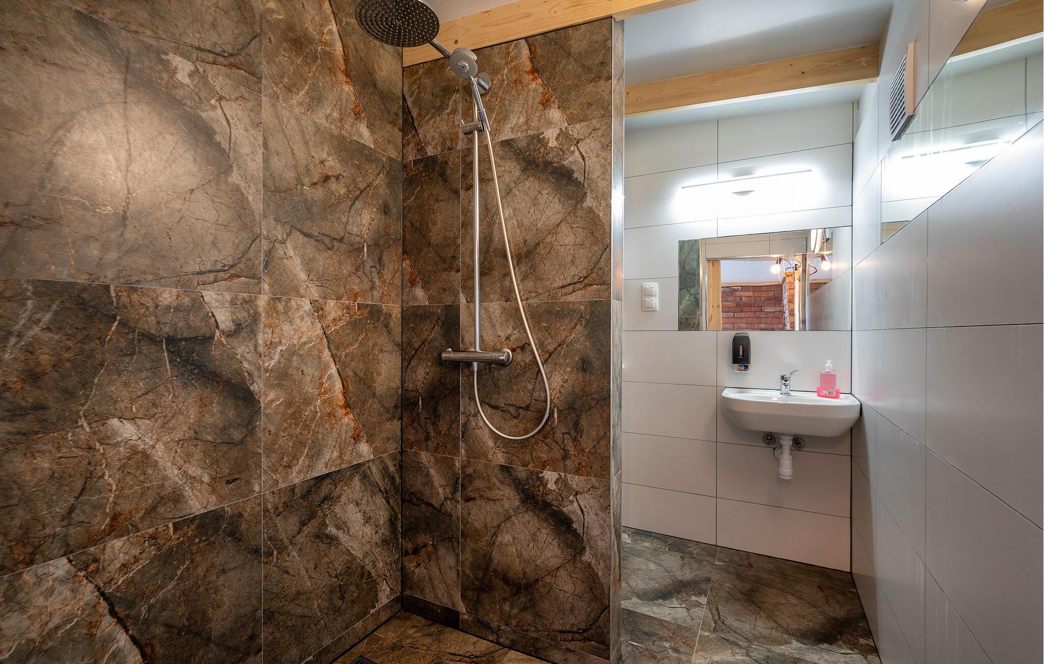 - WC mit warmem und kaltem Wasser, Dusche