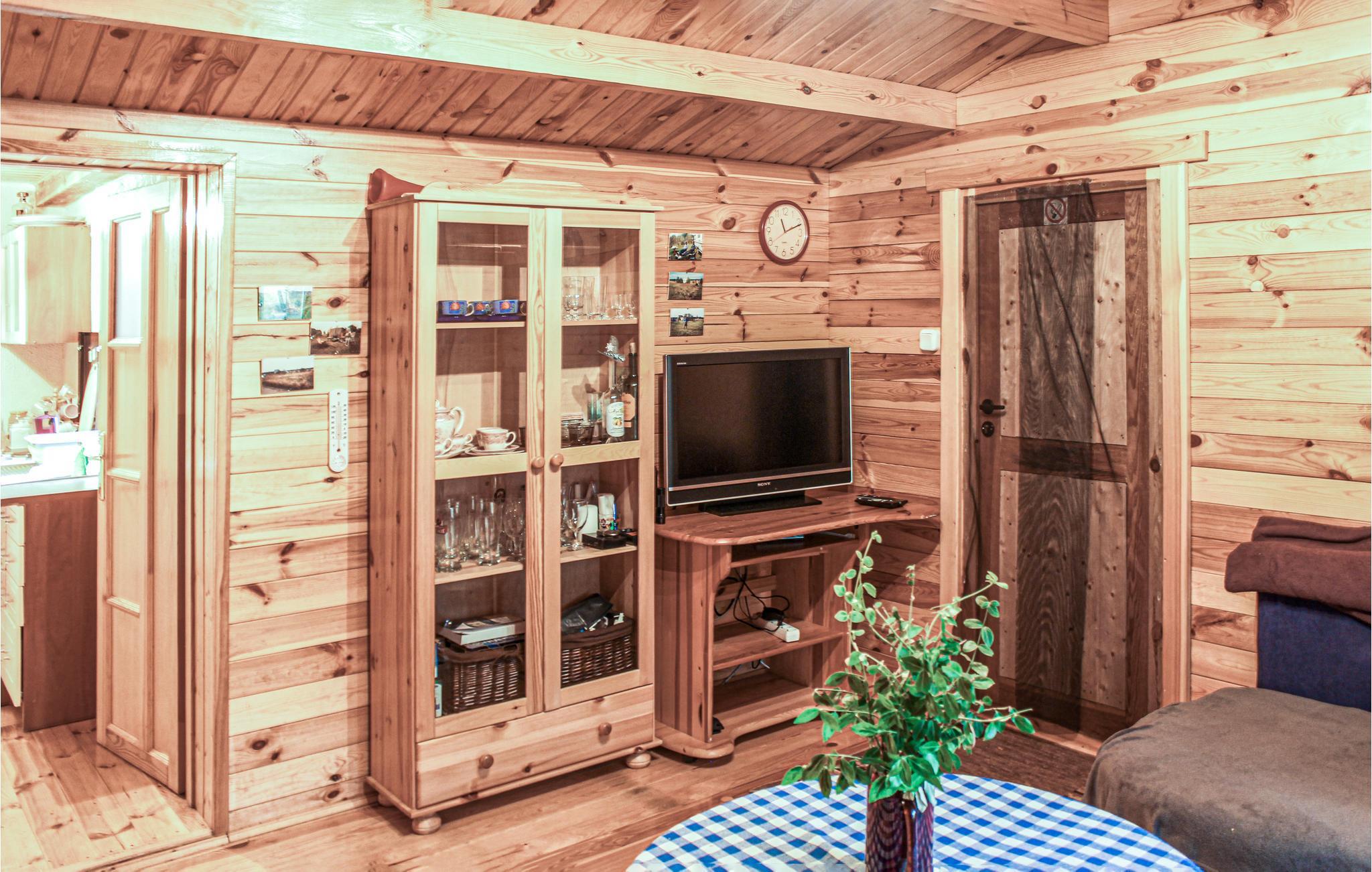 Es liegt in der Nähe des Dolgie Sees. Das große und gepflegte Grundstück ist ideal für Erholung. Ein Grill und eine Räucherei stehen Ihnen zur Verfügung. In der Gartenlaube befindet sich ein Kamin. Diese Wohnung ist praktisch und komfortabel eingerichtet.