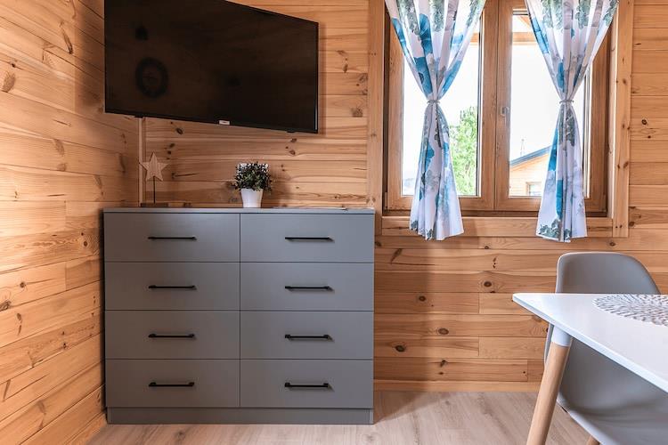 Komfortable, ganzjährig nutzbare Holzhäuser in Duszniki Zdrój. Die Häuser liegen auf einem Hügel mit Blick auf das Panorama eines Teils der Stadt. Jedes Haus verfügt über: 2 Schlafzimmer mit Doppelbetten, ein voll ausgestattetes Wohnzimmer (ausziehbares Sofa, TV, Tisch), Kochnische (Kühlschrank, Wasserkocher, Induktionskochfeld, Küchenutensilien, Geschirrset und Küchenzubehör), Badezimmer mit Dusche. Jedes Haus verfügt über eine 12 m2 große Kaffeeterrasse. Darüber hinaus verfügt die Anlage über einen Spielplatz, unbewachte Parkplätze, WLAN und einen Skiständer auf der Terrasse. Gäste haben außerdem Zugang zum SPA-Bereich (Badewanne und Sauna). Der Outdoor-Spa-Bereich steht ausschließlich Gästen zur Verfügung, erfordert eine Reservierung und wird zusätzlich bezahlt (1 Stunde 200 PLN, 2 Stunden 320 PLN, 3 Stunden 420 PLN). Gäste haben die Möglichkeit, ein Frühstücksbuffet zu erwerben. Das Frühstück wird in unserem Restaurant „Bistro Przyjaciólki“ im Resort serviert. Kinder bis 1 Jahr – kostenfrei Kinder über 1 Jahr bis 12 Jahre: 35 PLN/Frühstück Kinder über 12 Jahre und Erwachsene: 50 PLN/Frühstück.