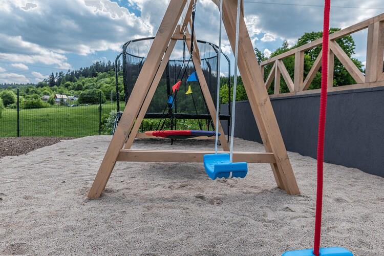 Parterre: (offene Küche(Wasserkocher, Kochendwasserhahn, Toaster, Kochherd, Espressomaschine, Kühl-/Gefrierkombination), Wohn-/Schlafzimmer(Doppelschlafcouch, TV(internationale TV-Kanäle), Esstisch, Sitzecke), Schlafzimmer(Doppelbett), Schlafzimmer(Doppelbett), Badezimmer(Dusche, Waschbecken, Toilette)) Sauna(alleinige Nutzung, gegen Gebühr), Internet, Terrasse, Garten(Gemeinschaftliche Nutzung mit anderen Gästen, umzäunt, angelegt, 1500 m2), Gartenmöbel, Grill, Parkplatz, Trampolin, Sandkasten, Spielgeräte, Rutsche, Spielzeug, Schaukel