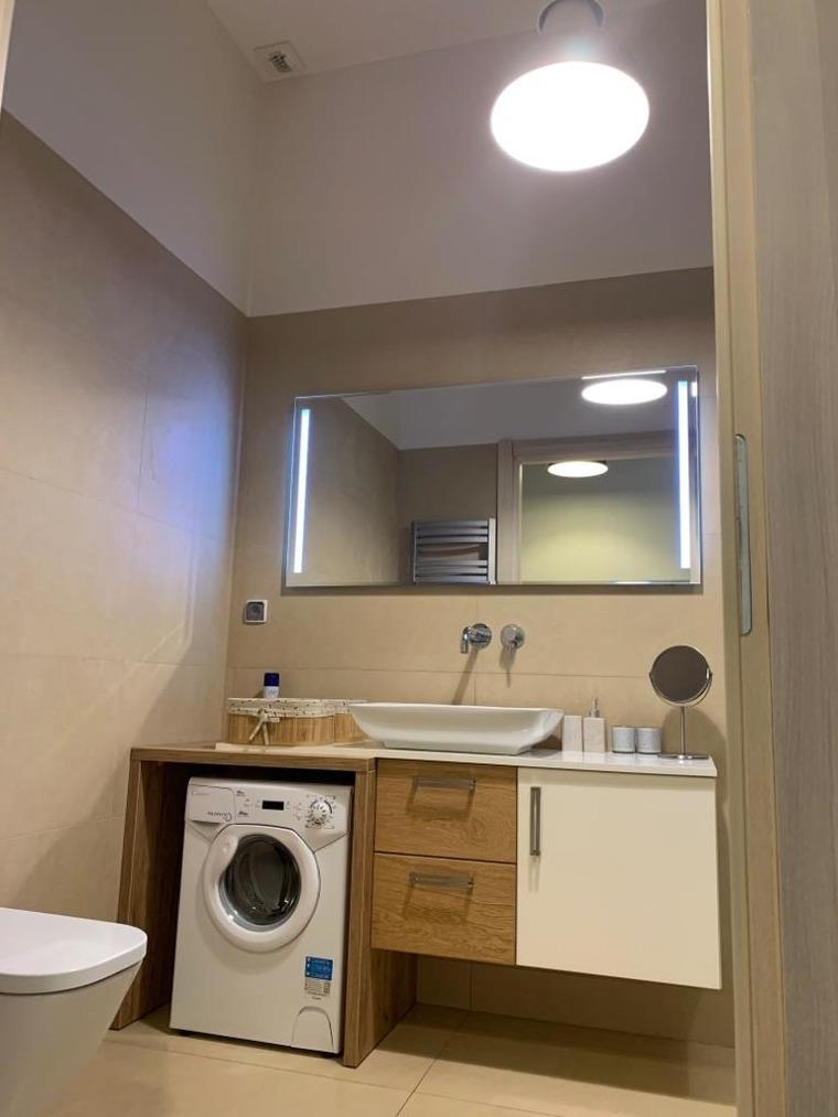 Im Badezimmer steht noch eine Waschmaschine.