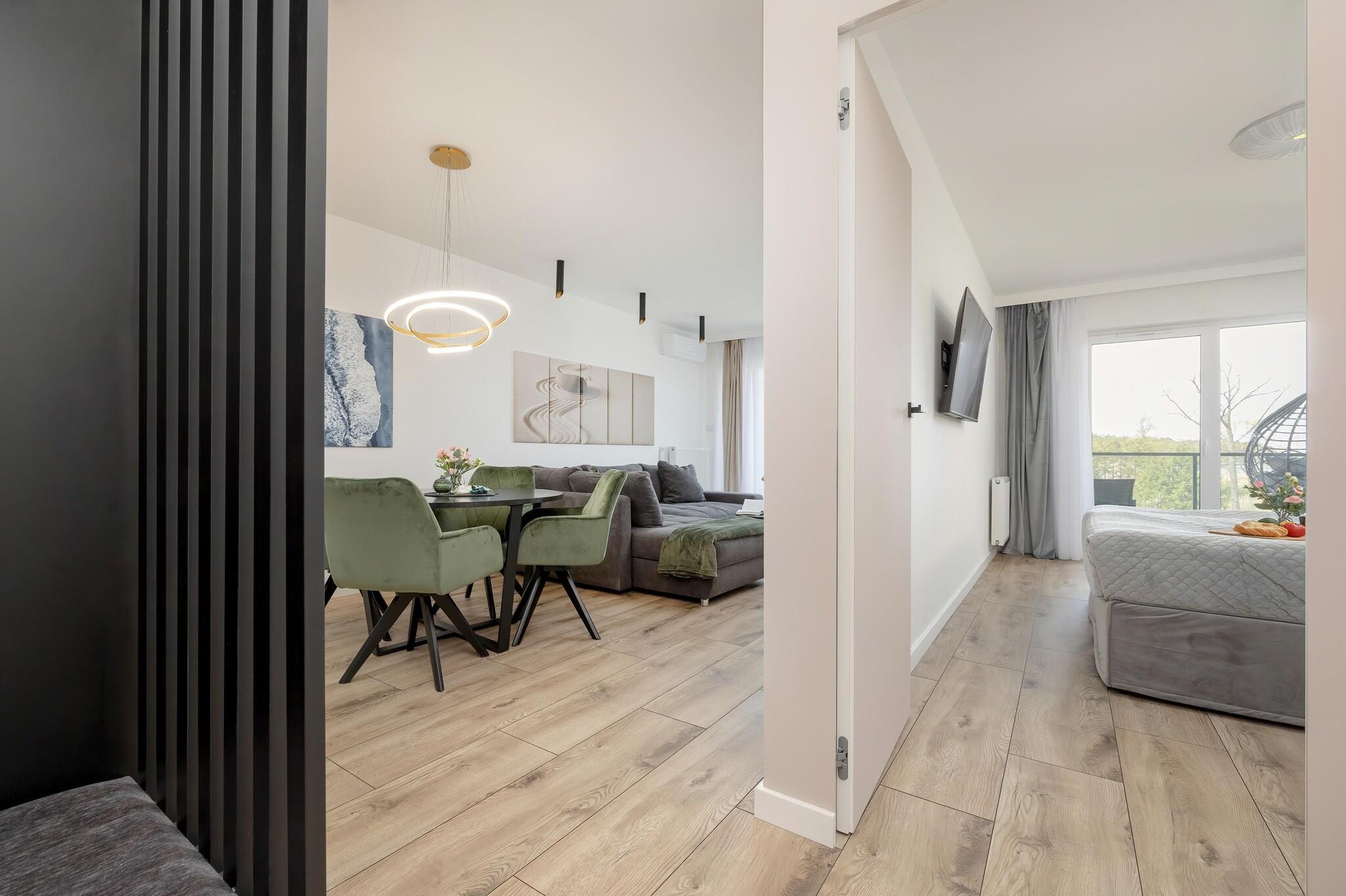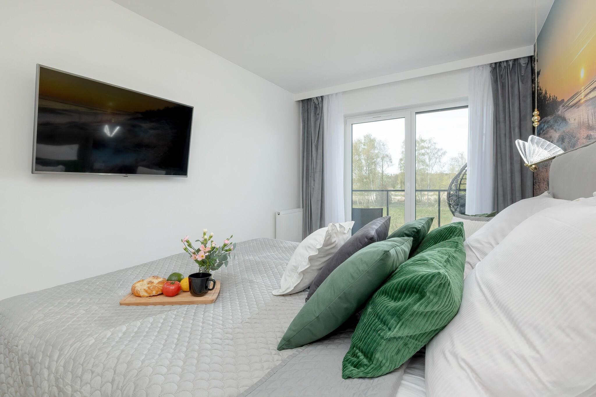 Ein Apartmentkomplex direkt am Ufer des Flusses Dziwna. Zusätzlich zu den Appartements bietet es einen SPA-Bereich mit Hallenbad, Whirlpool und Sauna. Zum Strand sind es ca. 700 m. Das Ortszentrum ist ca. 250 m entfernt. Die komfortable Wohnung befindet sich im Erdgeschoss. Es besteht aus einem Wohnzimmer, das mit einer gut ausgestatteten Küche verbunden ist, einem Schlafzimmer mit einem breiten Doppelbett und einem Badezimmer mit Dusche (es gibt eine Waschmaschine). Im Wohnzimmer gibt es ein Doppelschlafsofa, einen Tisch und einen Fernseher. Zur Wohnung gehört ein großer, überdachter Balkon. Zentralheizung. WLAN ist verfügbar. Die Anlage verfügt über ein schönes Hallenbad (+ Kinderbecken), Whirlpool, Sauna und Fitnessraum. Für die Anreise mit dem Auto ist ein Parkplatz vorhanden. Im Preis Ihres Aufenthaltes sind enthalten: Strom- und Wasserverbrauch, Schwimmbad, Sauna, Whirlpool, Fitnessraum, Parkplatz in der Tiefgarage, Internet. Babybett und Hochstuhl auf Anfrage verfügbar. Dziwnów hat einen sauberen, sandigen und bewachten Strand, der durch einen Dünenstreifen von der Stadt getrennt ist. Im Sommer können sich Kinder auf der Wasserrutsche und den aufblasbaren Sprunggeräten vergnügen. Aus dem Meer ragen hölzerne Wellenbrecher, auf denen oft Möwen sitzen. Im Sommer können Sie auch eine Fahrt auf einer Banane oder einem von einem Motorboot gezogenen Rad unternehmen. Eine weitere tolle Attraktion des Strandes ist die Promenade, die sich entlang der Dünen des breiten Sandstrandes erstreckt. Dies ist ein idealer Ort für Wanderer. Während Sie entspannen, können Sie die wunderschöne Aussicht und den Sonnenuntergang genießen. In der Zwischenzeit können Sie auf den Bänken Platz nehmen, die entlang der Promenade aufgestellt wurden. Im örtlichen Fischereihafen können Sie Fisch direkt vom Kutter kaufen. Darüber hinaus gibt es Verkaufsstände mit Räucherfisch und anderen Fischprodukten.