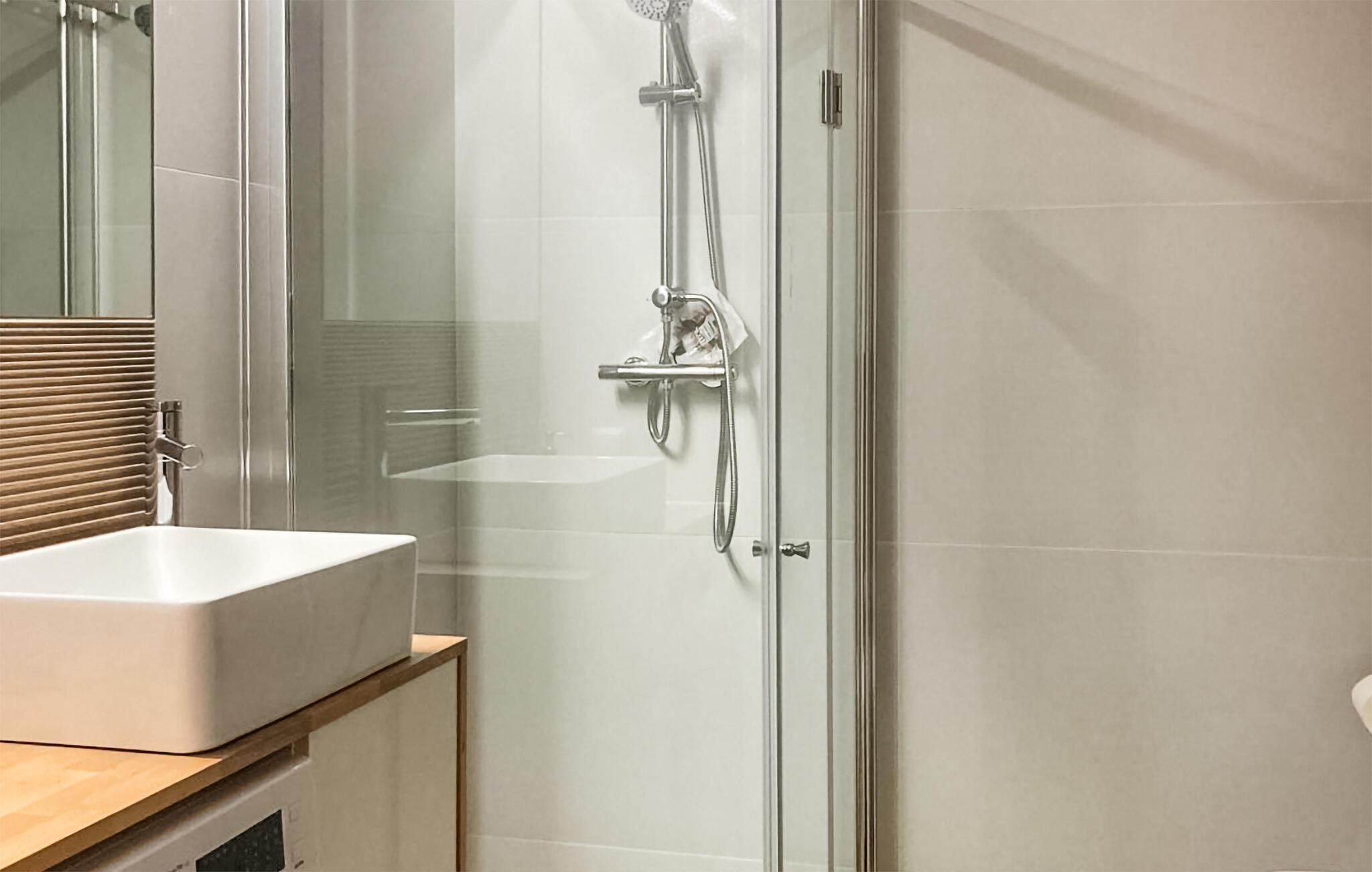 Machen Sie es sich auf dem schlichten Ecksofa bequem, während Tageslicht durch die großen Fenster fällt. Dank der hellen Farben und der ruhigen Einrichtung wirkt der Raum einladend. Nutzen Sie die kompakte, moderne Küchenzeile, um einfache Mahlzeiten zuzubereiten, und setzen Sie sich anschließend an den Esstisch, der genügend Platz für gemeinsame Runden bietet.