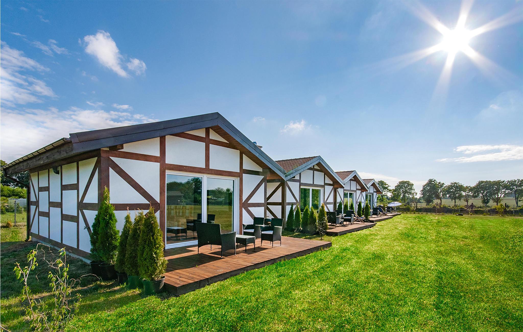 In kurzer Entfernung zum Küstendorf Jaroslawiec, finden Sie dieses kinderfreundliche Ferienhäuschen. Ein guter Ausgangspunkt für einen aktiven Familienurlaub. Die Sommerunterkunft mit einladender Stimmung bietet alles, was Sie für einen unbeschwerten Urlaub brauchen. Im Wohnraum fallen Ihnen sofort die großen Fenster auf, die für sowohl einen guten Lichteinfall als auch für eine schöne Aussicht sorgen. Das Haus verfügt über eine herrliche Terrasse, wo fröhliche Genusszeit auf Sie wartet. Das riesige, gemeinsame Naturgrundstück ist ein Paradies für alle kindlichen Seelen! Lassen Sie die Kinder auf dem Trampolin springen oder Volleyball spielen. Vielleicht machen Sie mit? Kaufen Sie frische Erdbeeren als Nachmittagssnack.