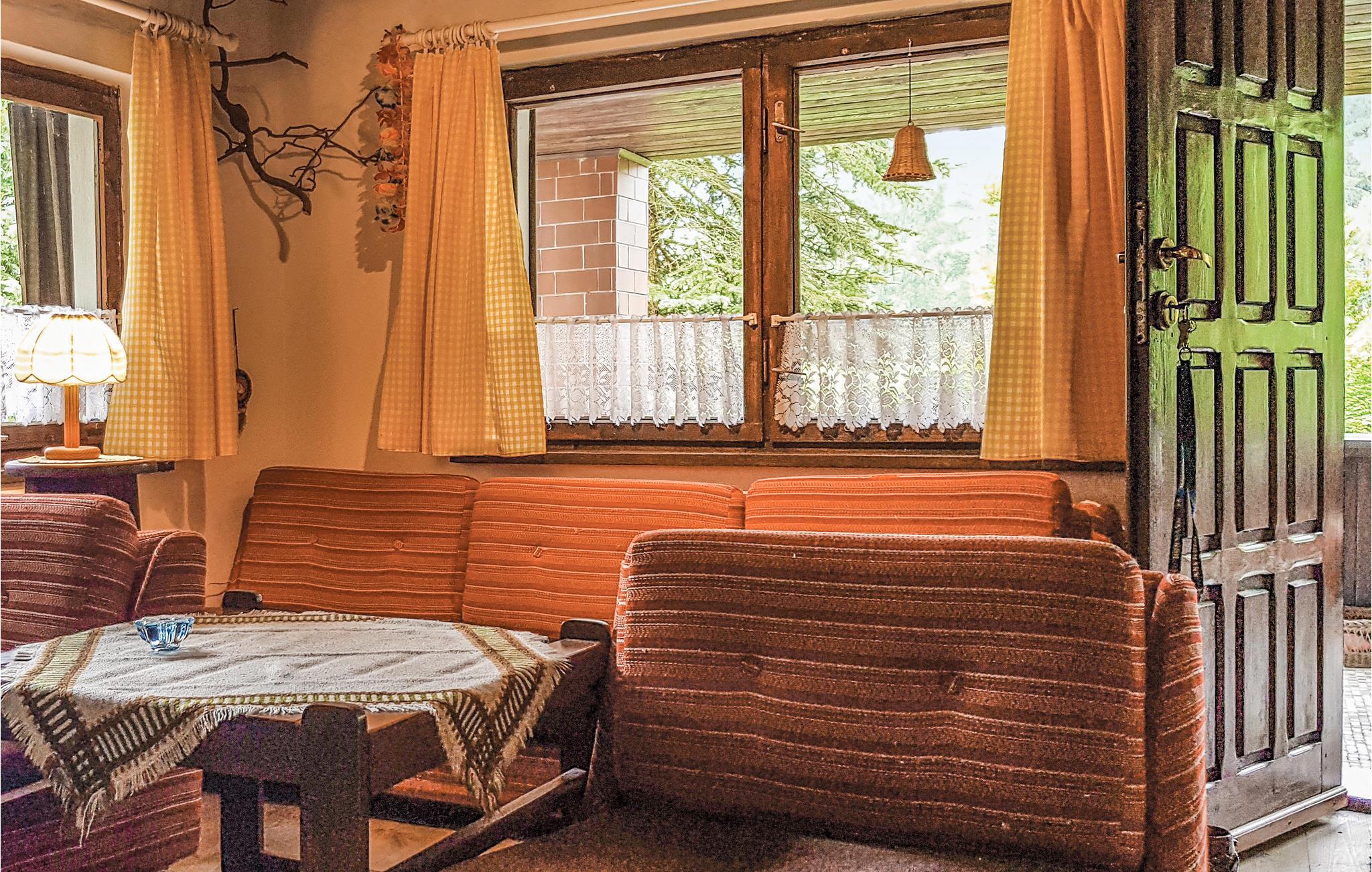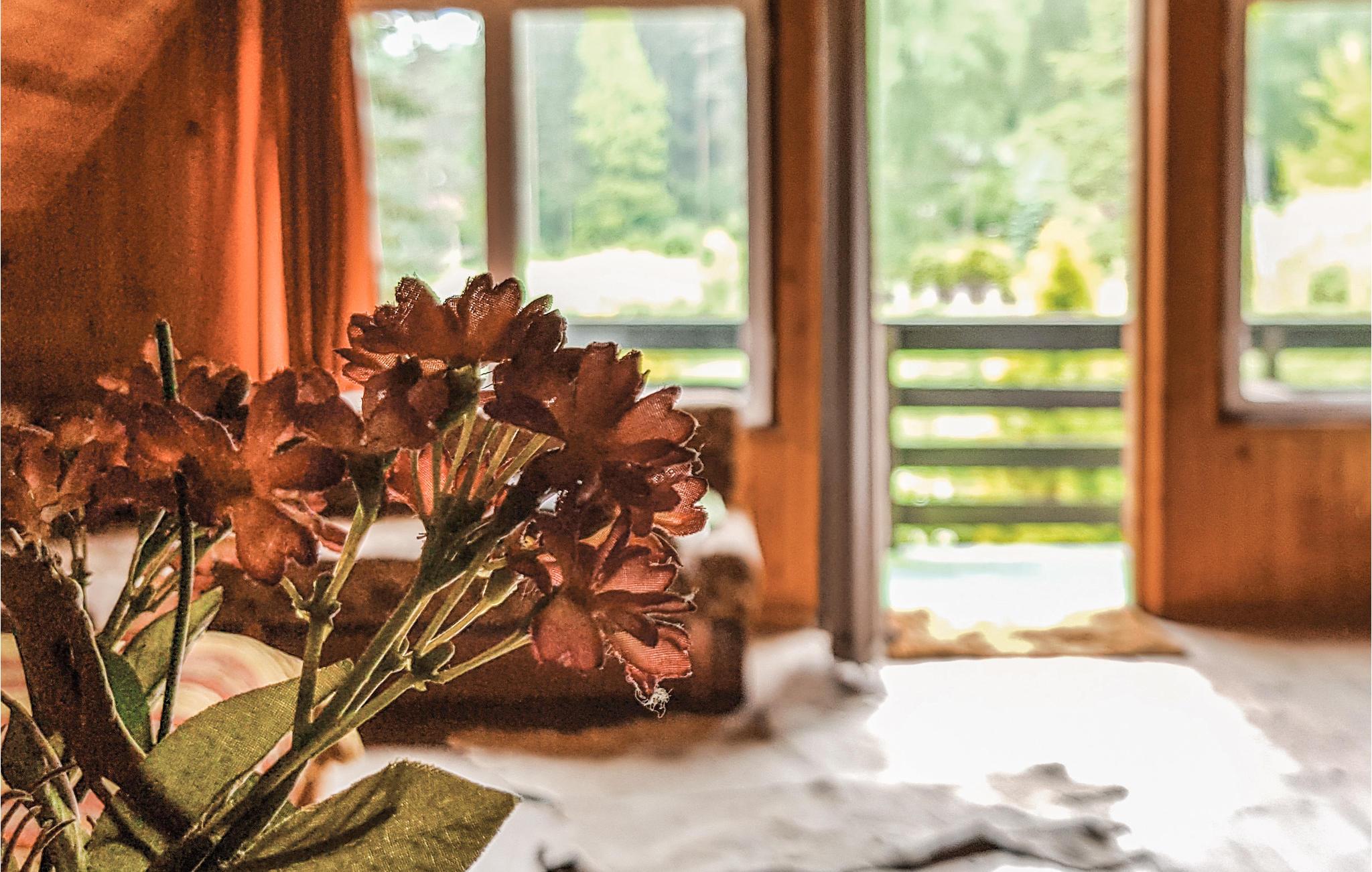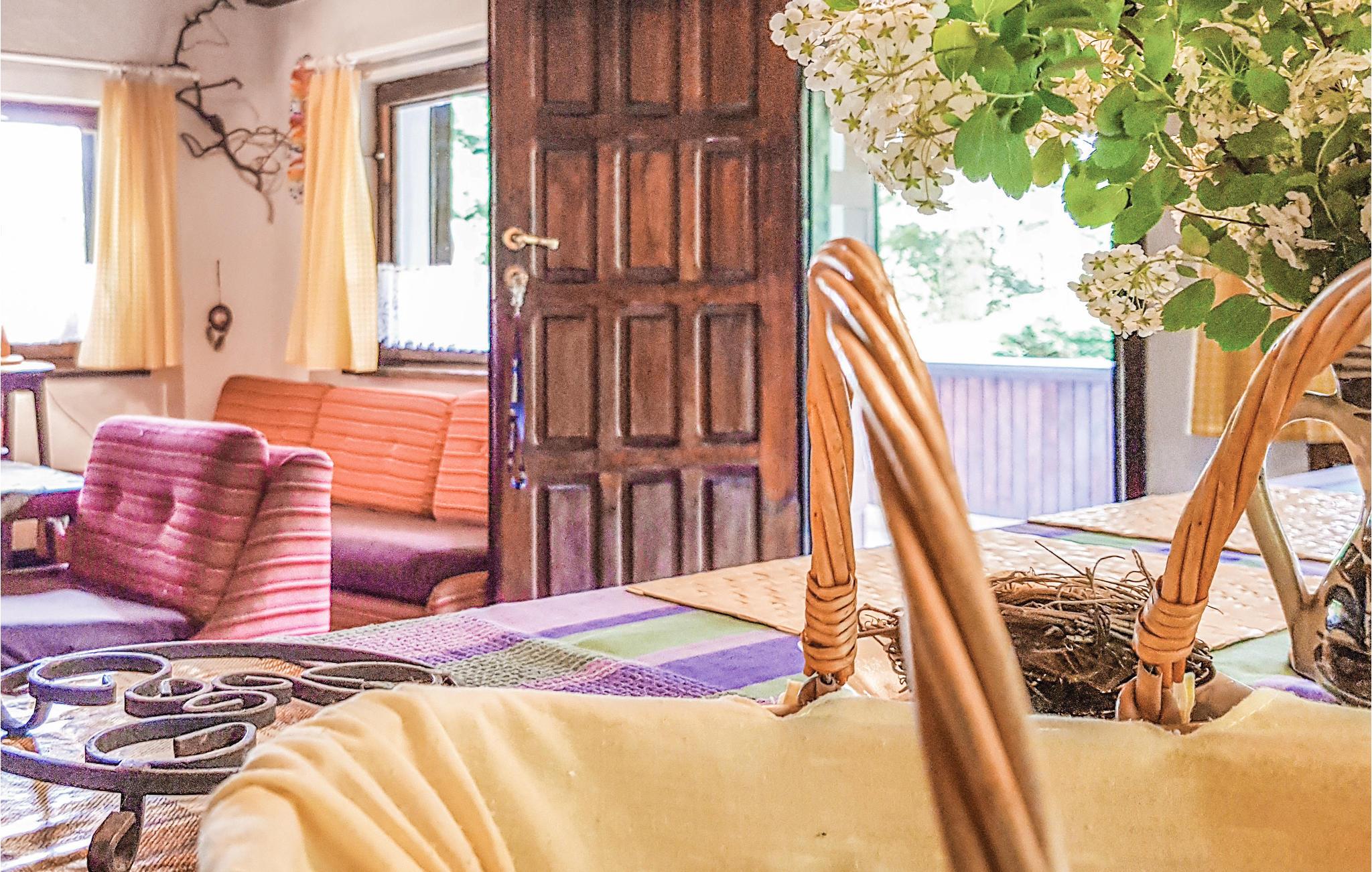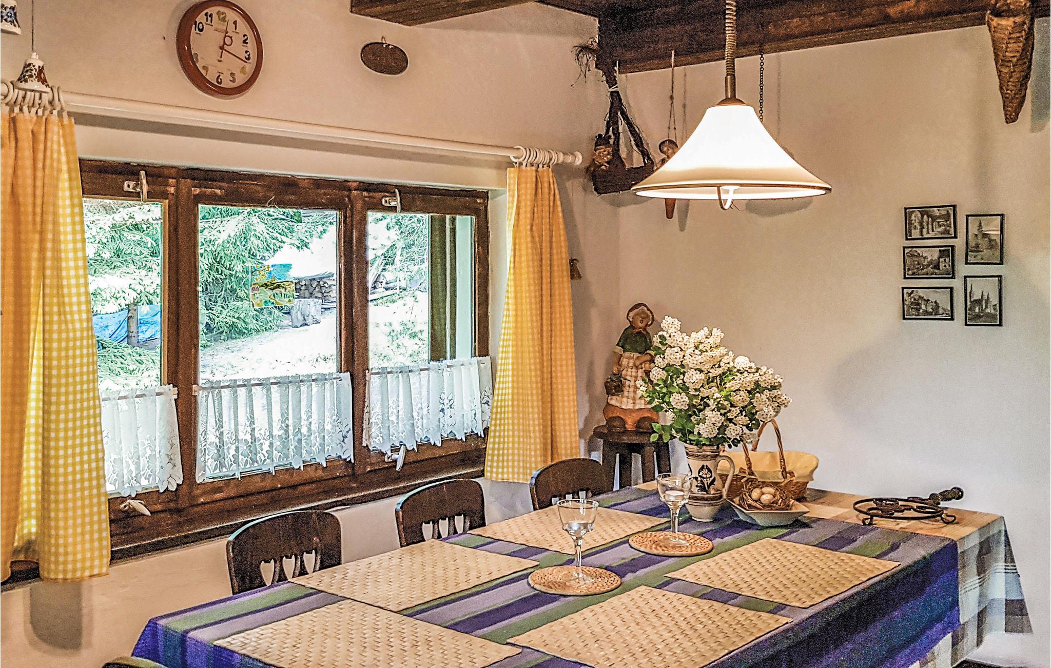 Ihr einfaches Holzhaus liegt direkt am See und bietet Ihnen eine ruhige Unterkunft inmitten der masurischen Natur. Hier verbringen Sie einen unkomplizierten Urlaub, bei dem Erholung und Nähe zum Wasser im Mittelpunkt stehen. Genießen Sie die warme Atmosphäre im Wohnbereich mit seinen schlichten Möbeln und nutzen Sie die Sitzgruppe für entspannte Abende. Der große Esstisch lädt zu geselligen Runden ein, während durch die großen Fenster viel Licht ins Haus fällt und Ihnen den Blick ins Grüne ermöglicht.