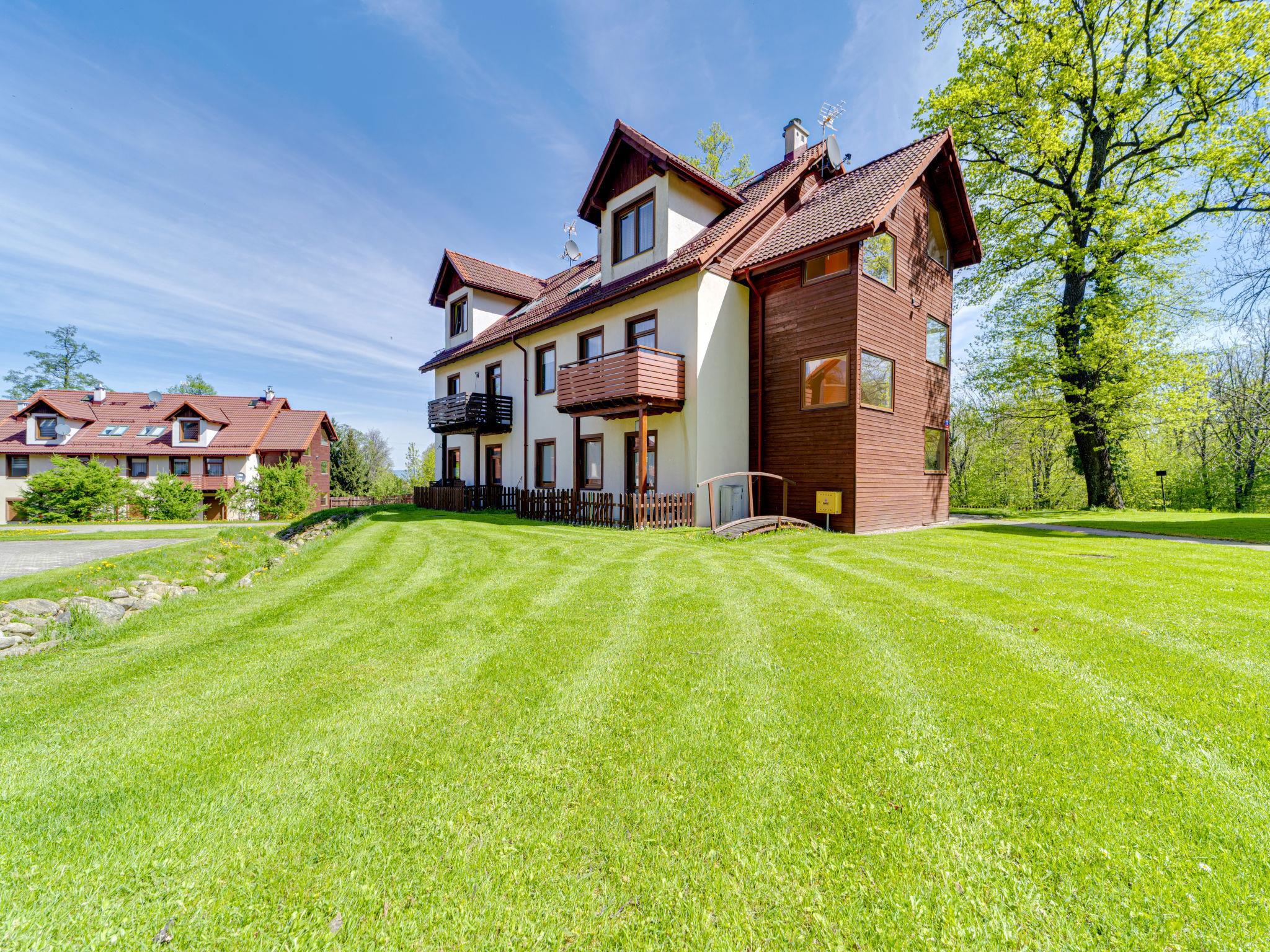 Modernes Appartementhaus "Nad Lomniczka", 480 m.ü.M., auf 3 Stockwerken, Baujahr 2009, umgeben von Bäumen. Im Ort, 1 km vom Zentrum, ruhige, sonnige Lage in einem Wohnquartier, 3 km vom Skigebiet, 500 m vom Bach, an einer Strasse, im Grünen. Zur Mitbenutzung: Grundstück 9'000 m2 (eingezäunt). Grillhaus. Im Hause: Zentralheizung. Parkplatz beim Haus auf dem Grundstück. Supermarkt 200 m, Restaurant 800 m, Bushaltestelle 100 m, Hallenbad 2 km. Tennis 3 km, Wanderwege ab Haus 500 m, Skilift 3 km, Skiverleih 3 km, Skischule 3 km, Schlittelbahn 2 km, Eisfeld 2 km. Bitte beachten: geeignet für Familien. Die Anlage wird nachts überwacht.