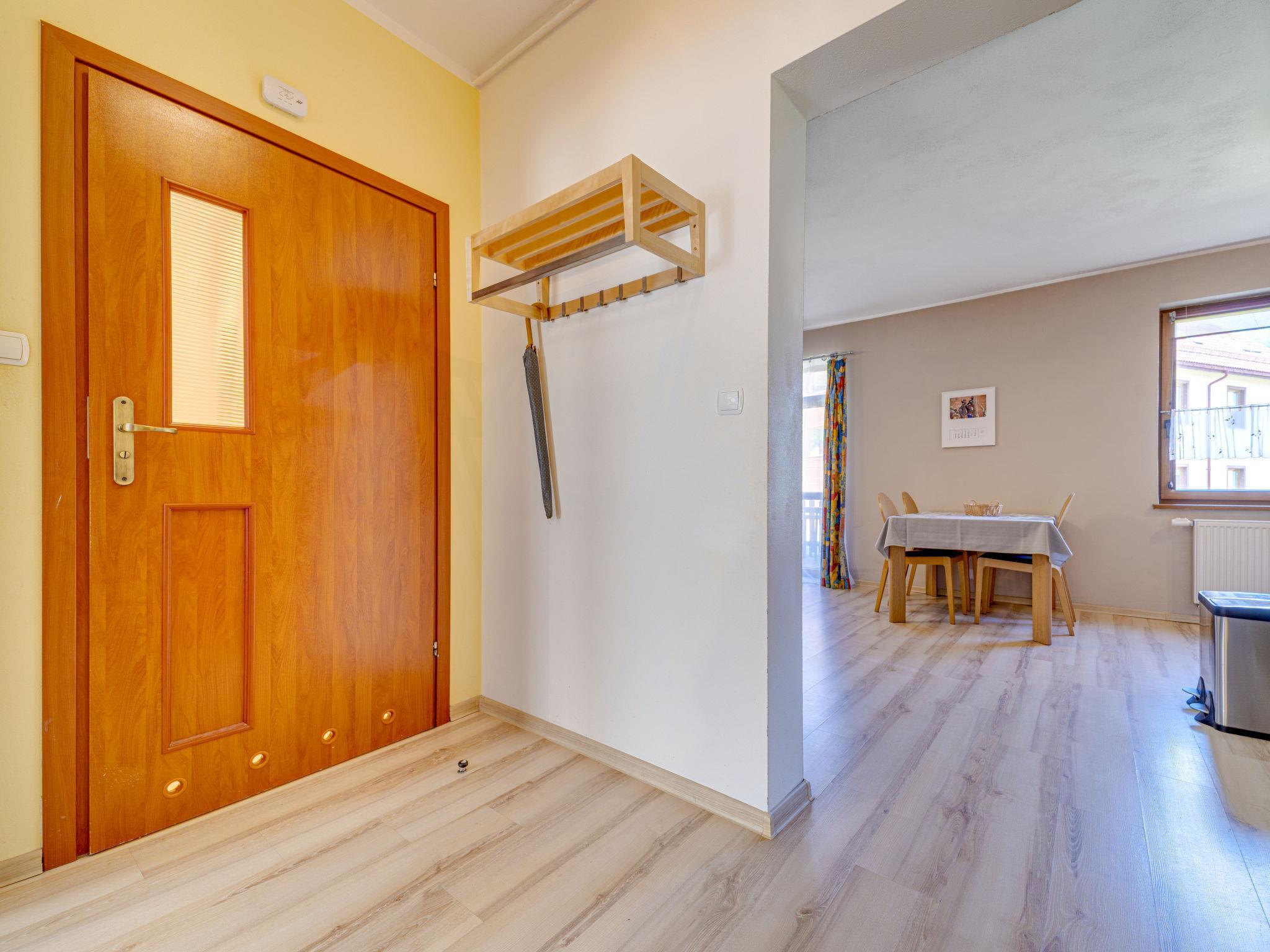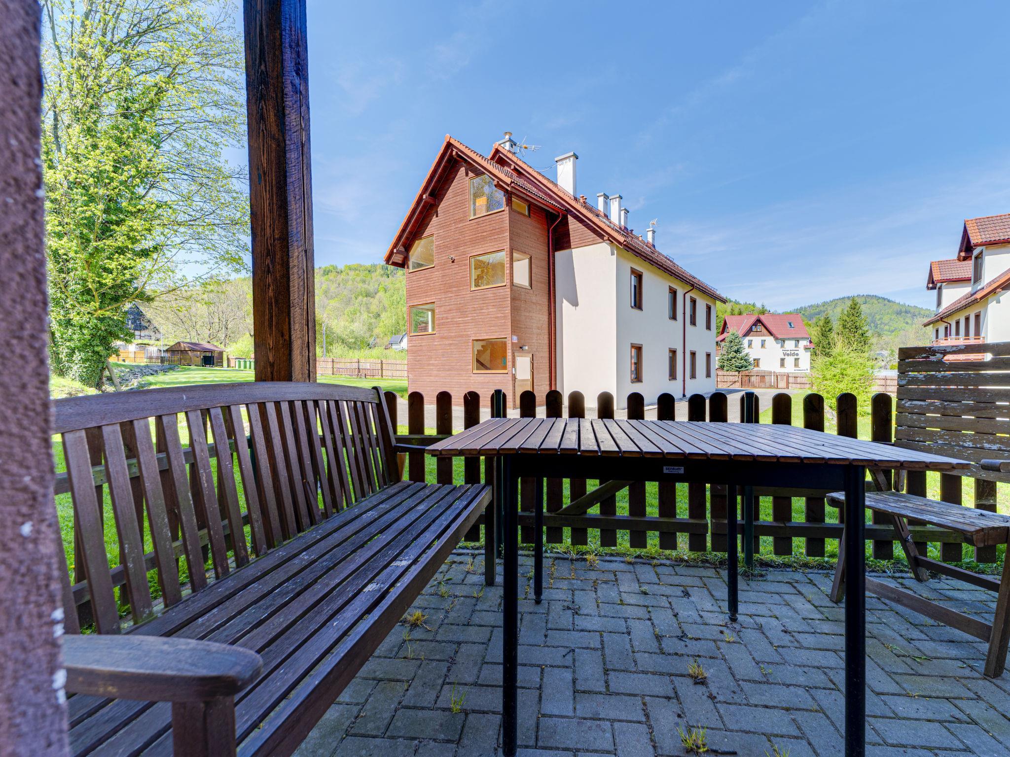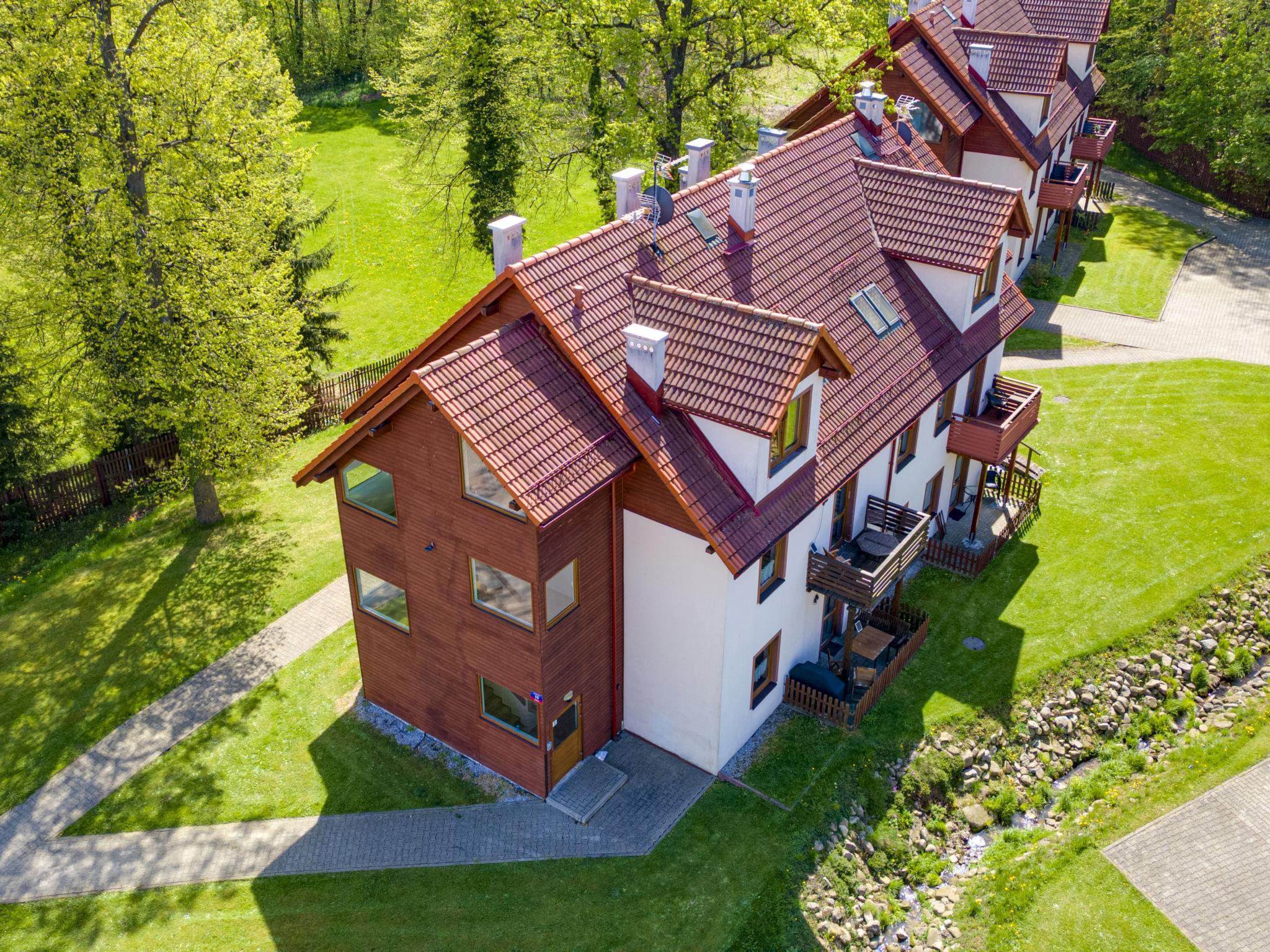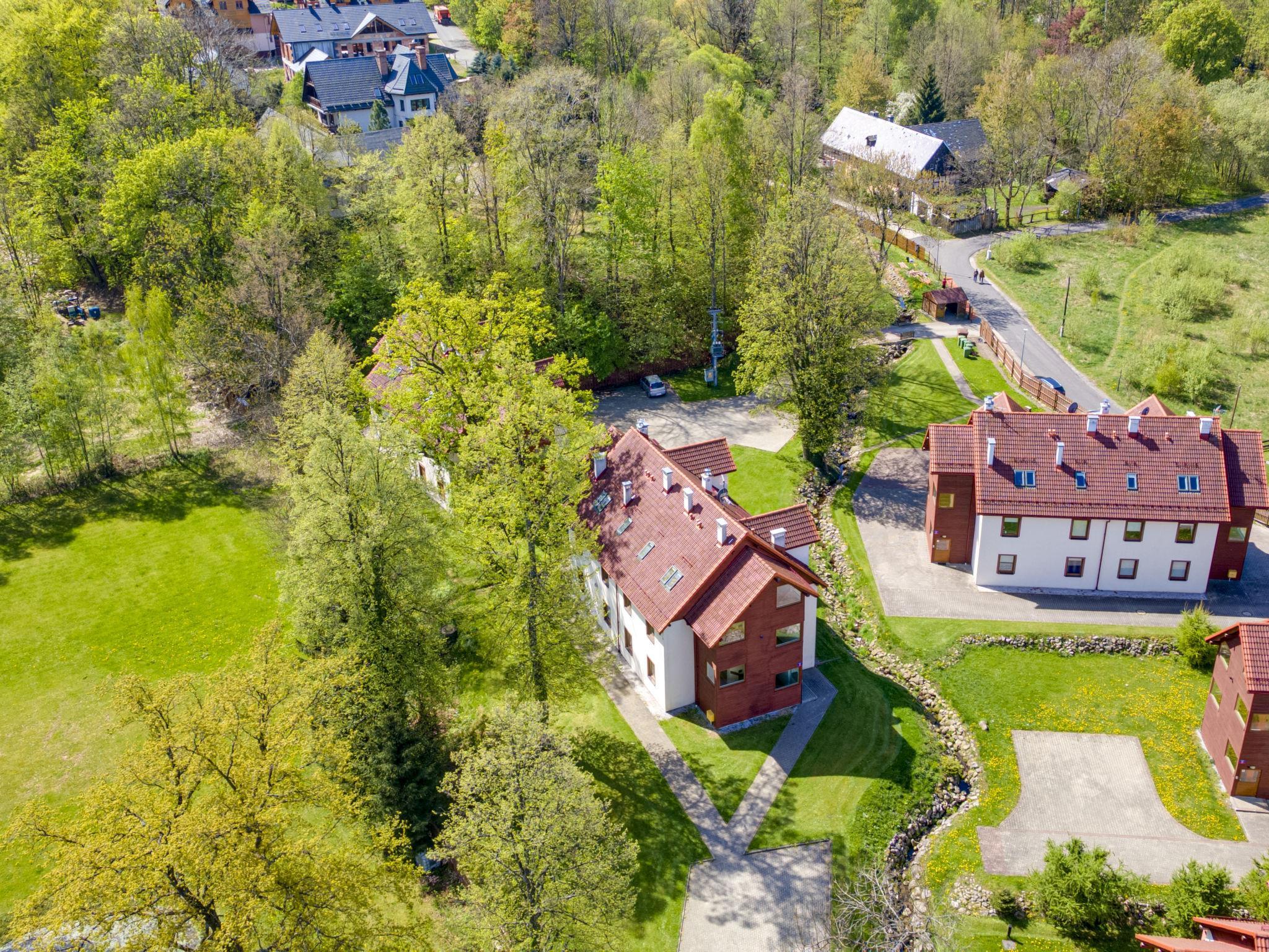 Modernes Appartementhaus "Nad Lomniczka", 480 m.ü.M., auf 3 Stockwerken, Baujahr 2009, umgeben von Bäumen. Im Ort, 1 km vom Zentrum, ruhige, sonnige Lage in einem Wohnquartier, 3 km vom Skigebiet, 500 m vom Bach, an einer Strasse, im Grünen. Zur Mitbenutzung: Grundstück 9'000 m2 (eingezäunt). Grillhaus. Im Hause: Zentralheizung. Parkplatz beim Haus auf dem Grundstück. Supermarkt 200 m, Restaurant 800 m, Bushaltestelle 100 m, Hallenbad 2 km. Tennis 3 km, Wanderwege ab Haus 500 m, Skilift 3 km, Skiverleih 3 km, Skischule 3 km, Schlittelbahn 2 km, Eisfeld 2 km. Bitte beachten: geeignet für Familien. Die Anlage wird nachts überwacht.