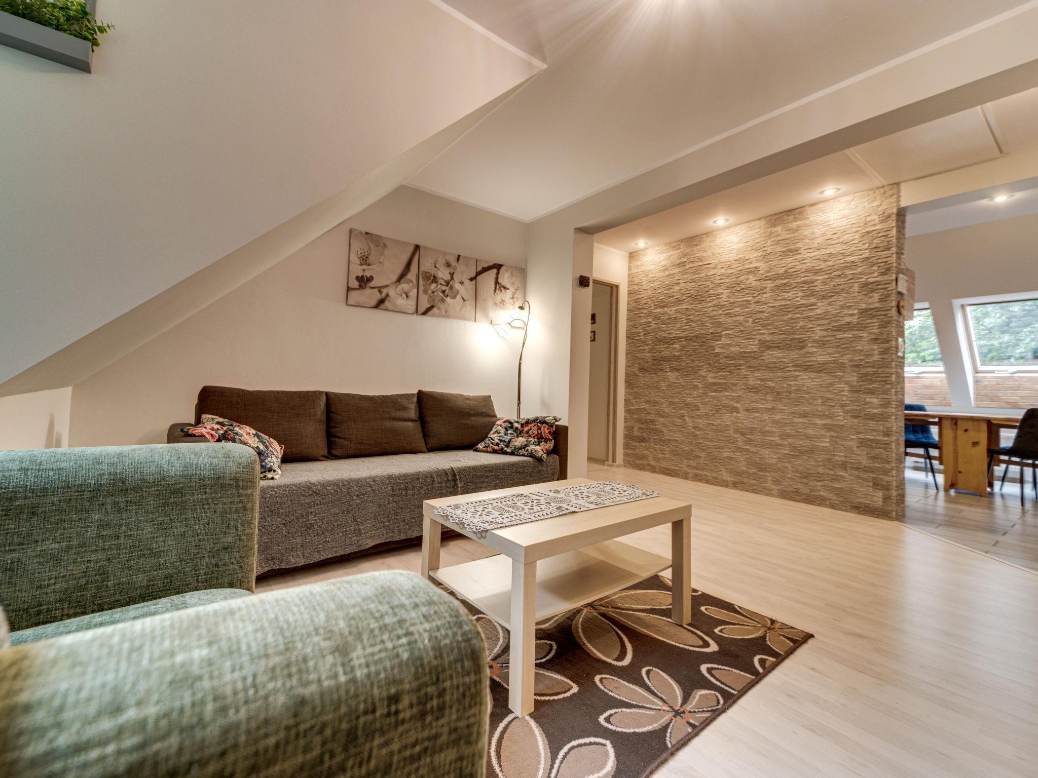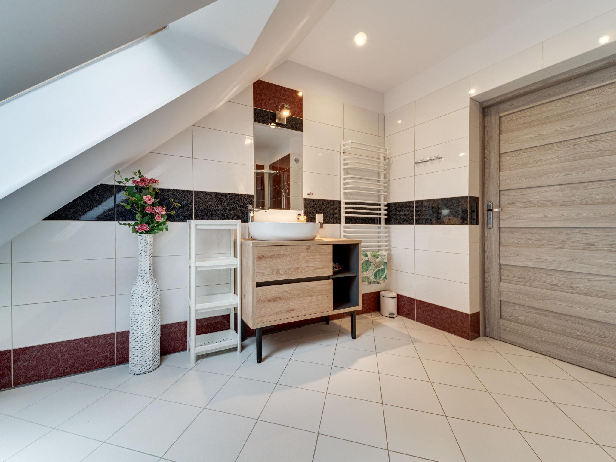 "Karpacz Boczna (poddasze)", 2-Zimmer-Wohnung 55 m2, im Dachgeschoss. Abgeschrägt, komfortabel und gemütlich eingerichtet: abgeschrägtes Wohn-/Schlafzimmer mit 1 Diwanbett, Sat-TV, Radio und Stereoanlage. 1 abgeschrägtes Zimmer mit 1 Doppelbett. Abgeschrägte, offene Küche (Backofen, Geschirrspüler, 4 Flammen, Mikrowelle, Tiefkühler) mit Essecke. Dusche/WC. G-Heizung. Sicht auf den Fluss. Zur Verfügung: Internet (WLAN). Parkplatz beim Haus.