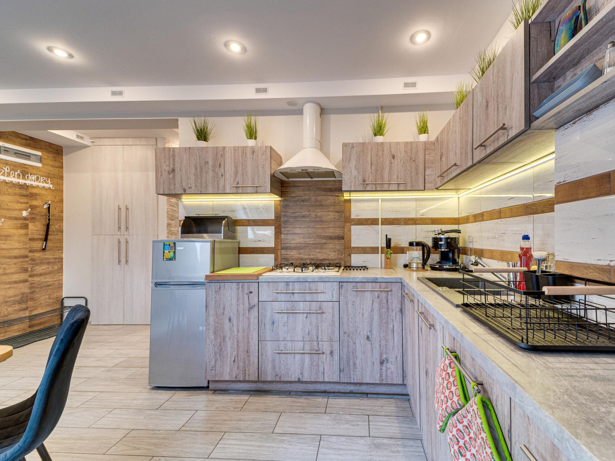 Mehrfamilienhaus, Baujahr 2012. Im Ort, am Ortsrand, sonnige Lage am Hang, im Grünen. Zur Mitbenutzung: Grundstück (eingezäunt), Garten. Grill. Im Hause: Wireless LAN, Zentralheizung, Wäschetrockner. Zufahrt bis zum Haus. Parkplatz beim Haus. Lebensmittelgeschäft 1 km, Supermarkt 1.5 km, Restaurant 2 km, Bushaltestelle 1 km, Hallenbad 5 km. Skilift 1.5 km. Nahe gelegene Sehenswürdigkeiten: Park Rozrywki Kulak Paark 200 m, Muzeum Zabawek 1 km, Karpatka Panorama Lift 1.2 km.