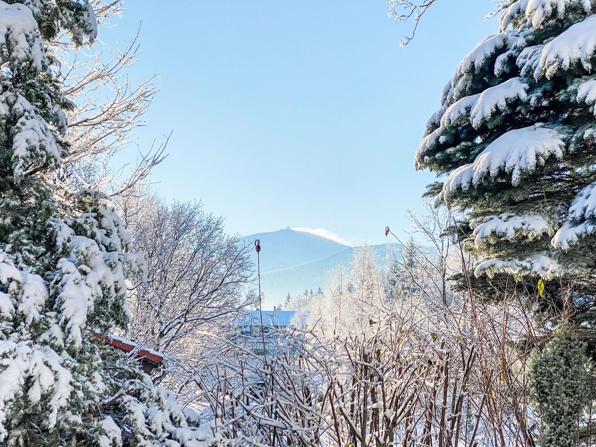 Haus "Holiday home in the Giant Mountains", Baujahr 1996, renoviert im Jahre 2022. Am Ortsrand, 300 m vom Skigebiet, 20 m vom Bach. Zur Alleinbenutzung: Grundstück 2'500 m2, Garten 800 m2. Grill, Parkplatz (für 4 Autos) beim Haus. Lebensmittelgeschäft 200 m, Supermarkt 2 km, Bushaltestelle 400 m, Freibad 2 km, Thermalbad "Jelenia Góra" 15 km. Wanderwege ab Haus, Radweg 100 m, Skilift, Skipisten 300 m, Langlaufloipe 2.3 km, Kinderspielplatz 150 m. Nahe gelegene Sehenswürdigkeiten: Krkonoše National Park 100 m. Bekannte Skigebiete sind gut erreichbar: Kopa Karpacz 2.3 km, Pod Wangiem 300 m, Jakuszyce 40 km.