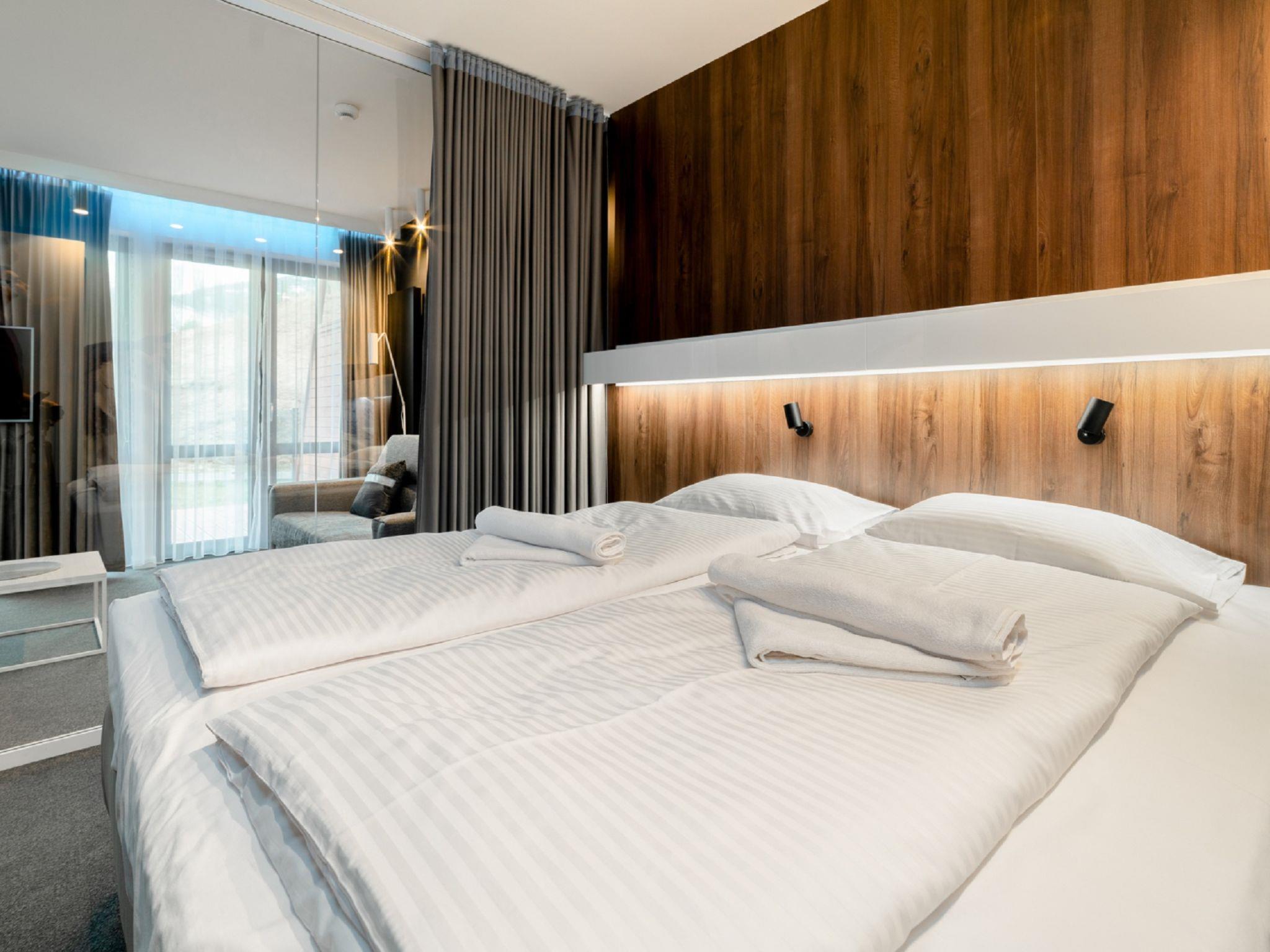 "Sun & Snow 4 people", 2-Zimmer-Wohnung 35 bis 46 m2. Wohn-/Schlafzimmer mit 1 Diwanbett und Sat-TV. Ausgang zum Balkon. 1 Zimmer mit 1 Doppelbett. Offene Küche (Geschirrspüler, 1 Induktionskochplatten, Wasserkocher) mit Essecke. Dusche/WC. Heizung, G-Heizung. Zur Verfügung: Haartrockner. Internet (WLAN). Bitte beachten: Rauchmelder.