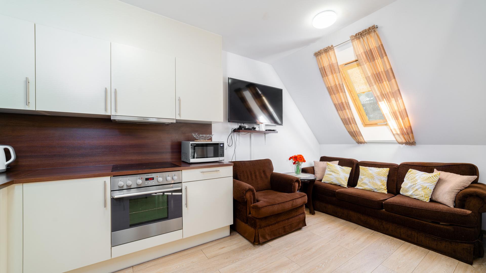 Die Apartments Pod Sniezka an der Mysliwska-Straße sind eine wunderbare Häusersiedlung , gleich bei Skikomplexen Panorama und Karpatka gelegen, wo sich zwei milde Abhänge mit einem Schlepplift für Anfänger und fortgeschritten Anfänger befinden.