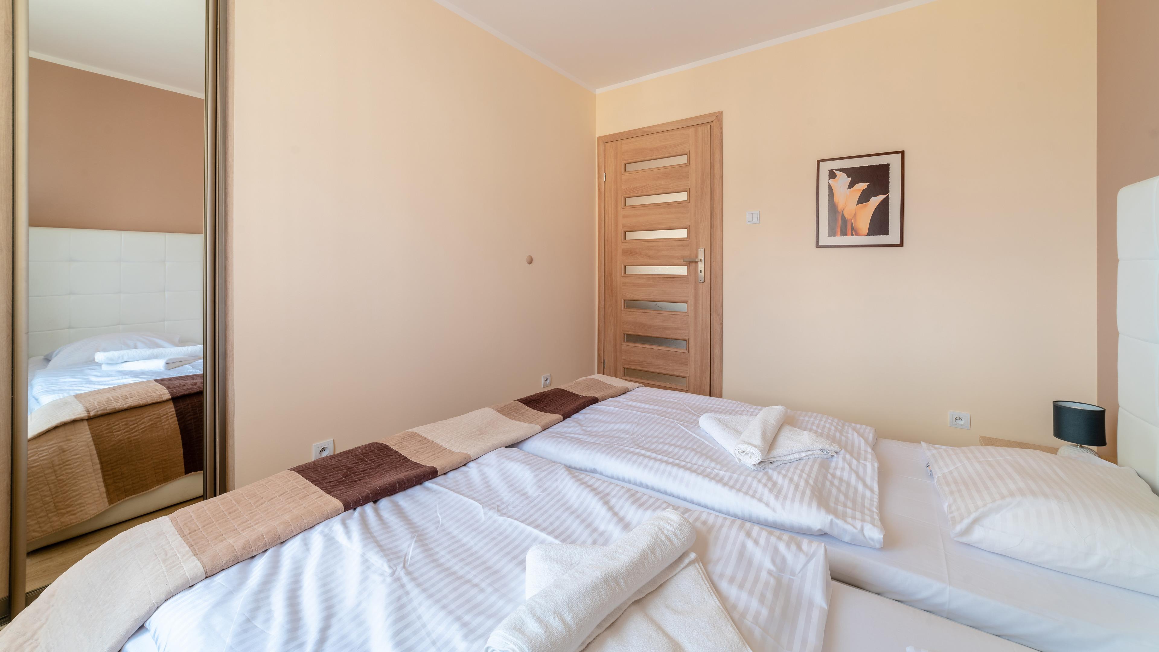 Zu den gewählten Apartments darf man mit dem Hund ankommen. Die zusätzlichen Kosten des Aufenthalts mit einem vierbeinigen Freund betragen 100 PLN (Einzelgebühr). Die Gäste, die den Aufenthalt mit dem Hund planen, bitten wir um eine frühere Kontaktaufnahme mit unserem Service im lokalen Büro.