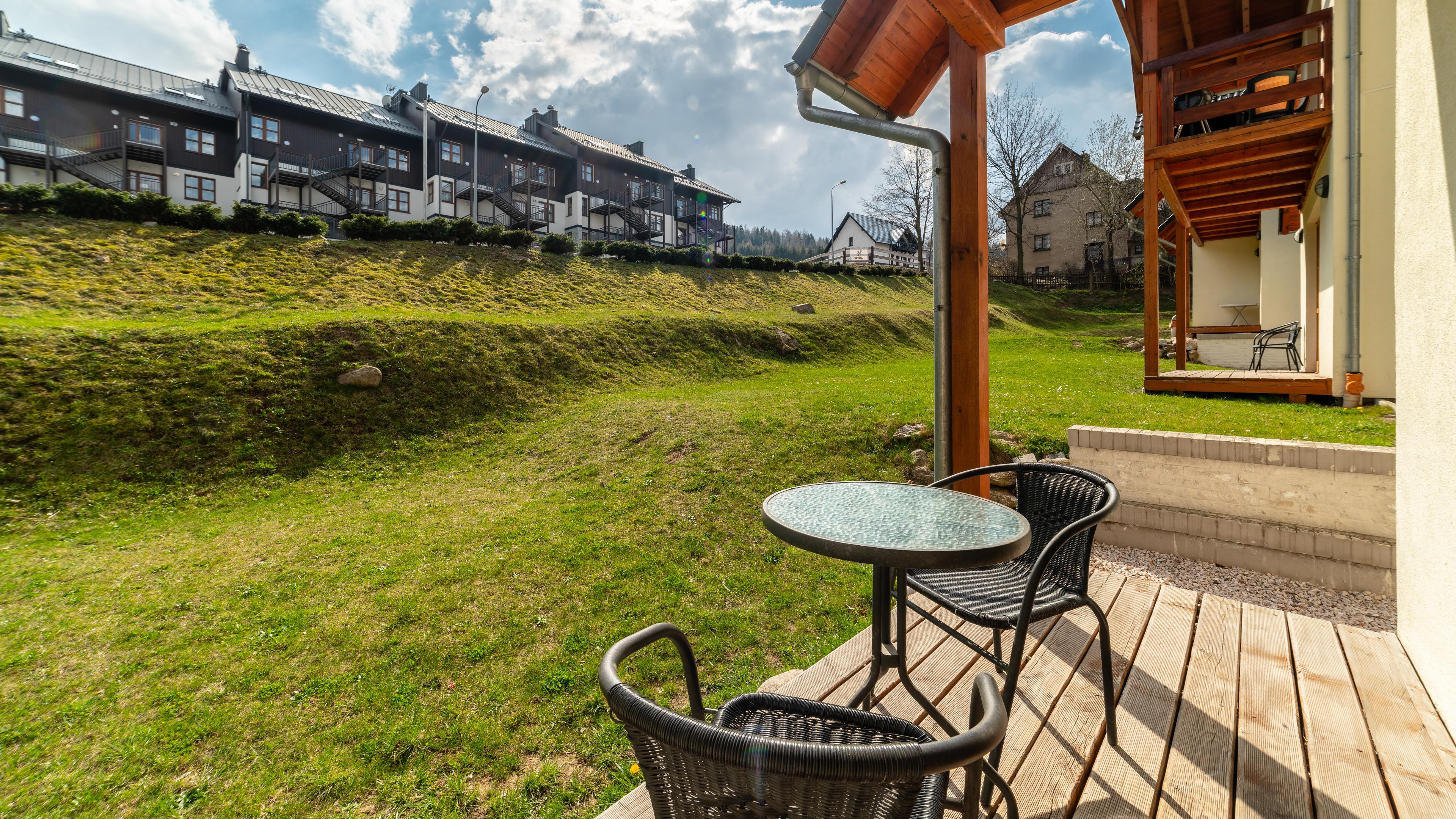 Die Apartments Pod Sniezka an der Mysliwska-Straße sind eine wunderbare Häusersiedlung , gleich bei Skikomplexen Panorama und Karpatka gelegen, wo sich zwei milde Abhänge mit einem Schlepplift für Anfänger und fortgeschritten Anfänger befinden.