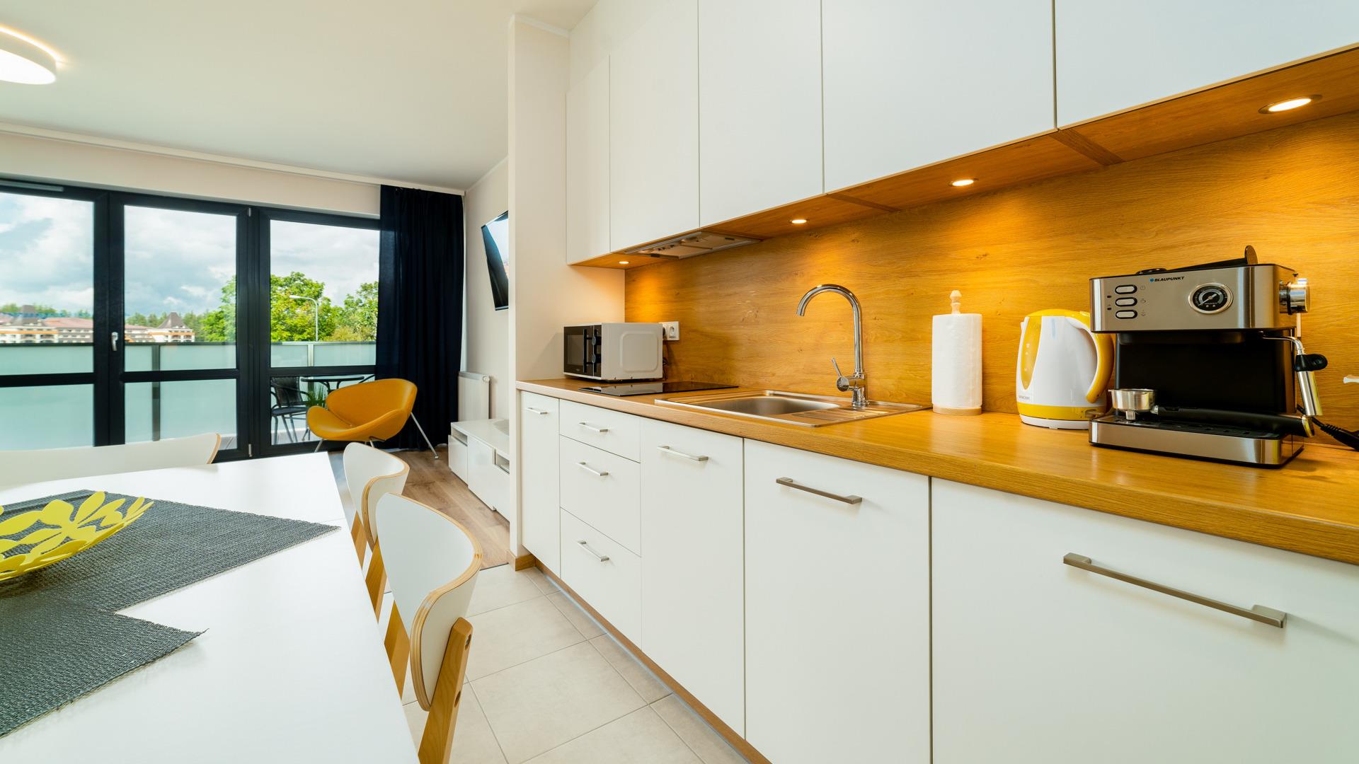 Alle angebotenen Apartments verfügen über eine voll ausgestattete Küchenzeile und ein elegantes Badezimmer mit Dusche.