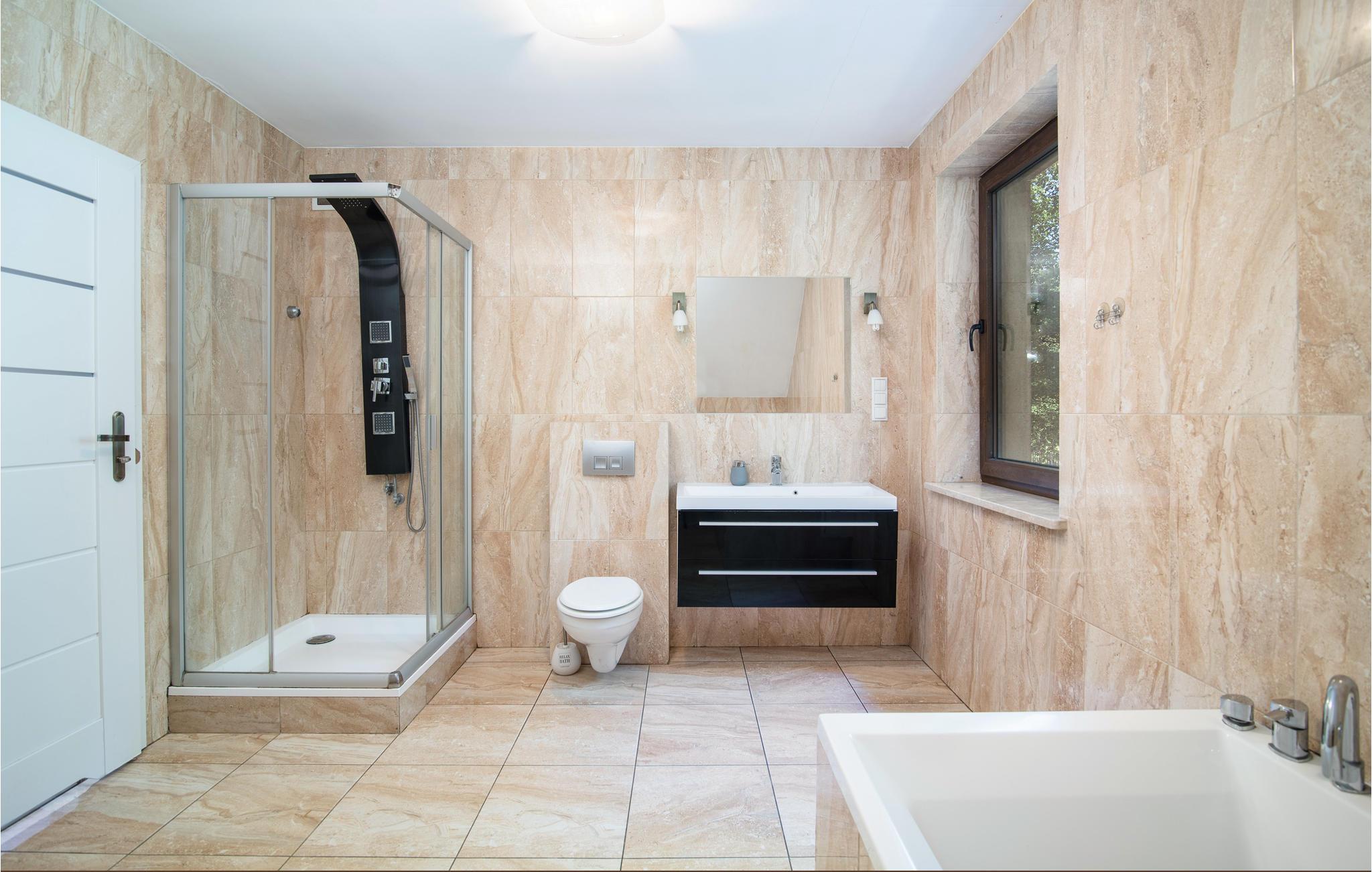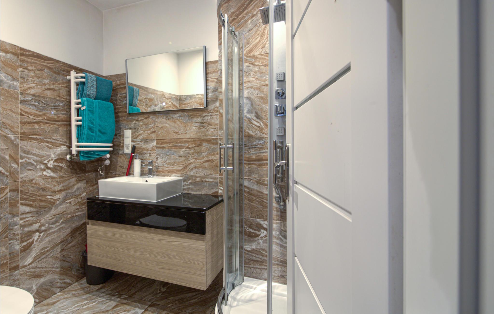 - WC mit warmem und kaltem Wasser, Dusche und Badewanne
