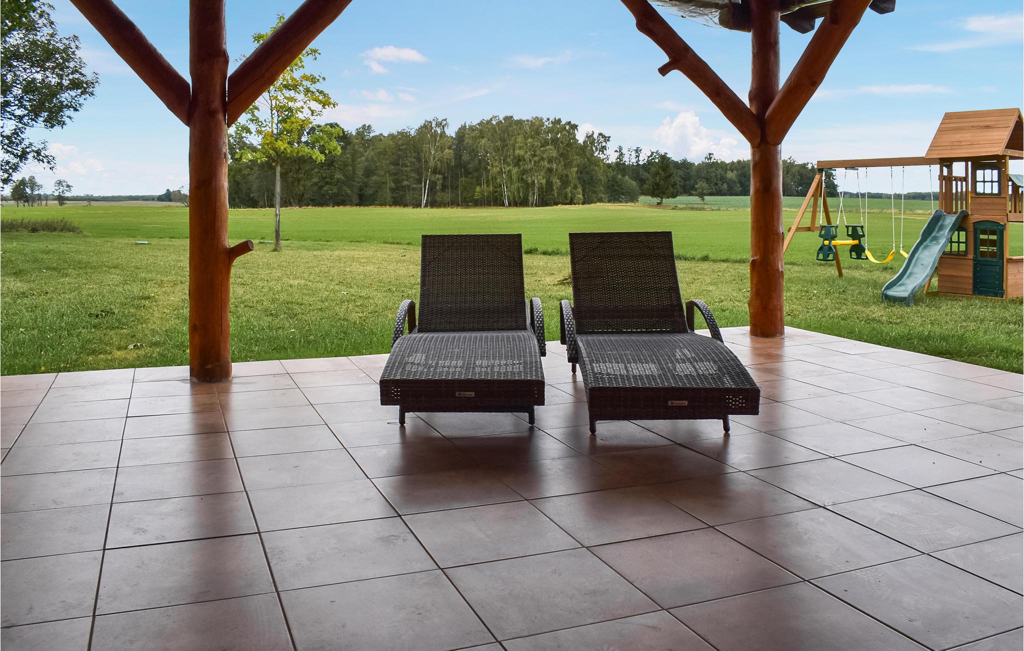 Suchen Sie nach einem komfortablen Ferienhaus in schöner natürlicher Umgebung für Ihre große Familie? Dann ist dieses zweistöckige Haus eine gute Wahl. Hier werden Sie sich wohlfühlen und können die bewaldete Lage genießen. Das urige Innere, der steinerne Kamin und die gemütliche Einrichtung erschaffen in der Unterkunft eine angenehme, warme Atmosphäre. Kochen Sie gemeinsam in der Küche und versammeln sich auf der Terrasse, wo Sie auf den Sonnenliegen entspannen können. Das Haus bietet mehrere Unterhaltungsmöglichkeiten für die Kleinen. Am Badesee nahe dem Haus können Sie in der Sauna entspannen und im natürlichen Pool baden.