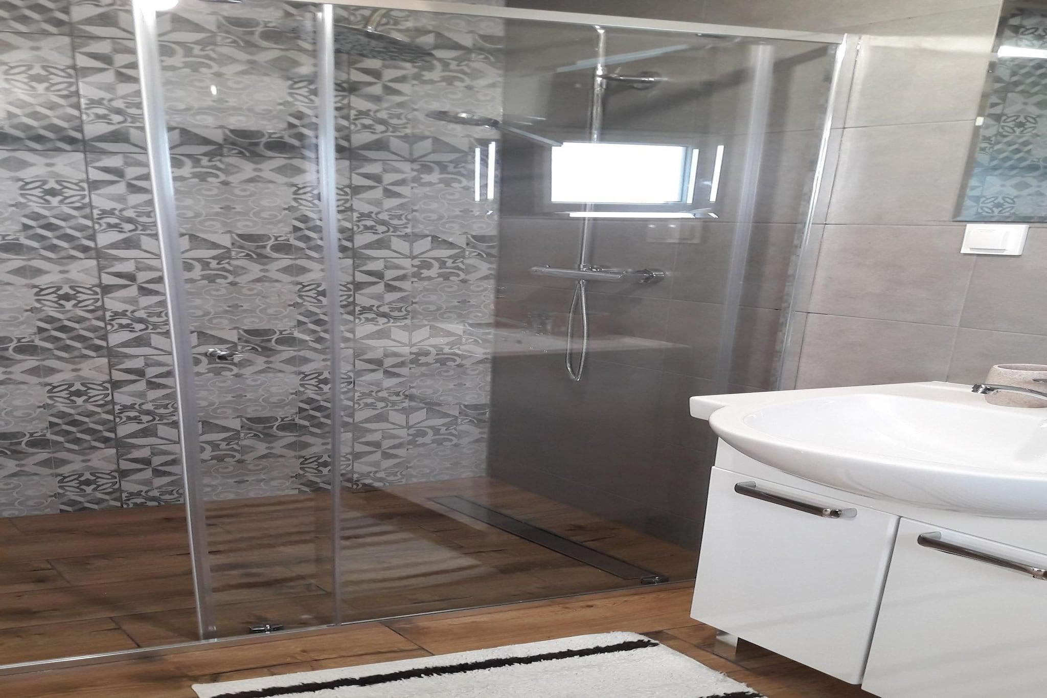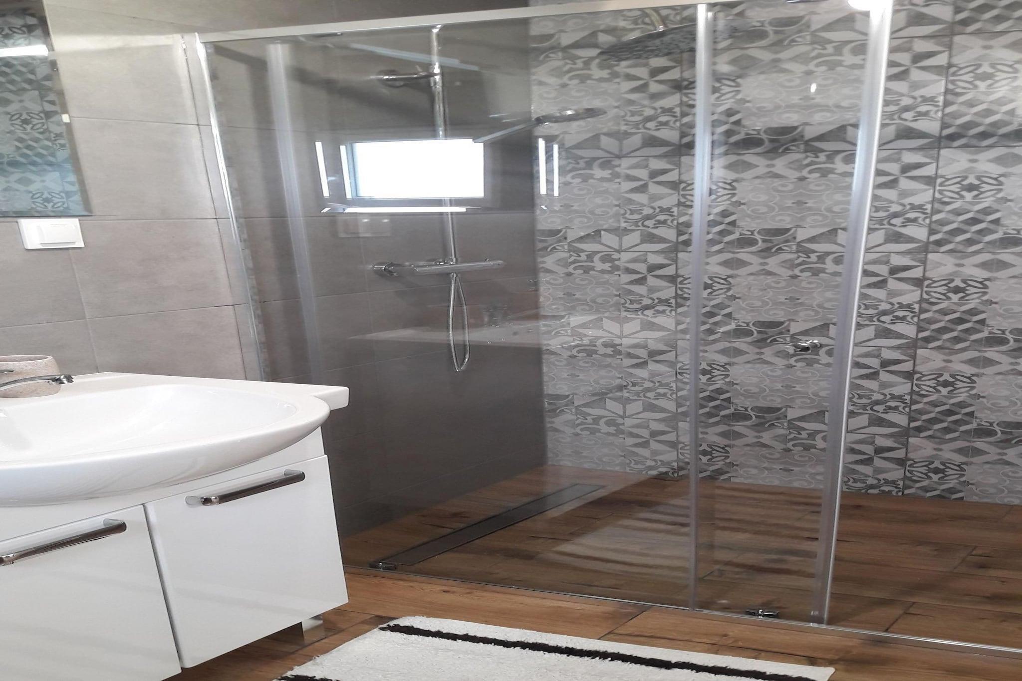 Parterre: (offene Küche(Kochplatte(4 Kochplatten, elektrisch), Wasserkocher, Kochendwasserhahn, Espressomaschine, Backofen, Kühlschrank), Wohn/Esszimmer(TV, Esstisch, Sitzecke, Hochstuhl), Badezimmer(Dusche, Waschbecken, Toilette)) In der 1. Etage: (Schlafzimmer(Einzelbett, Doppelbett), Schlafzimmer(Einzelbett, Doppelbett)) Terrasse, Garten(umzäunt, angelegt), Gartenmöbel, Grill, Parkplatz, Trampolin, Spielgeräte, Rutsche
