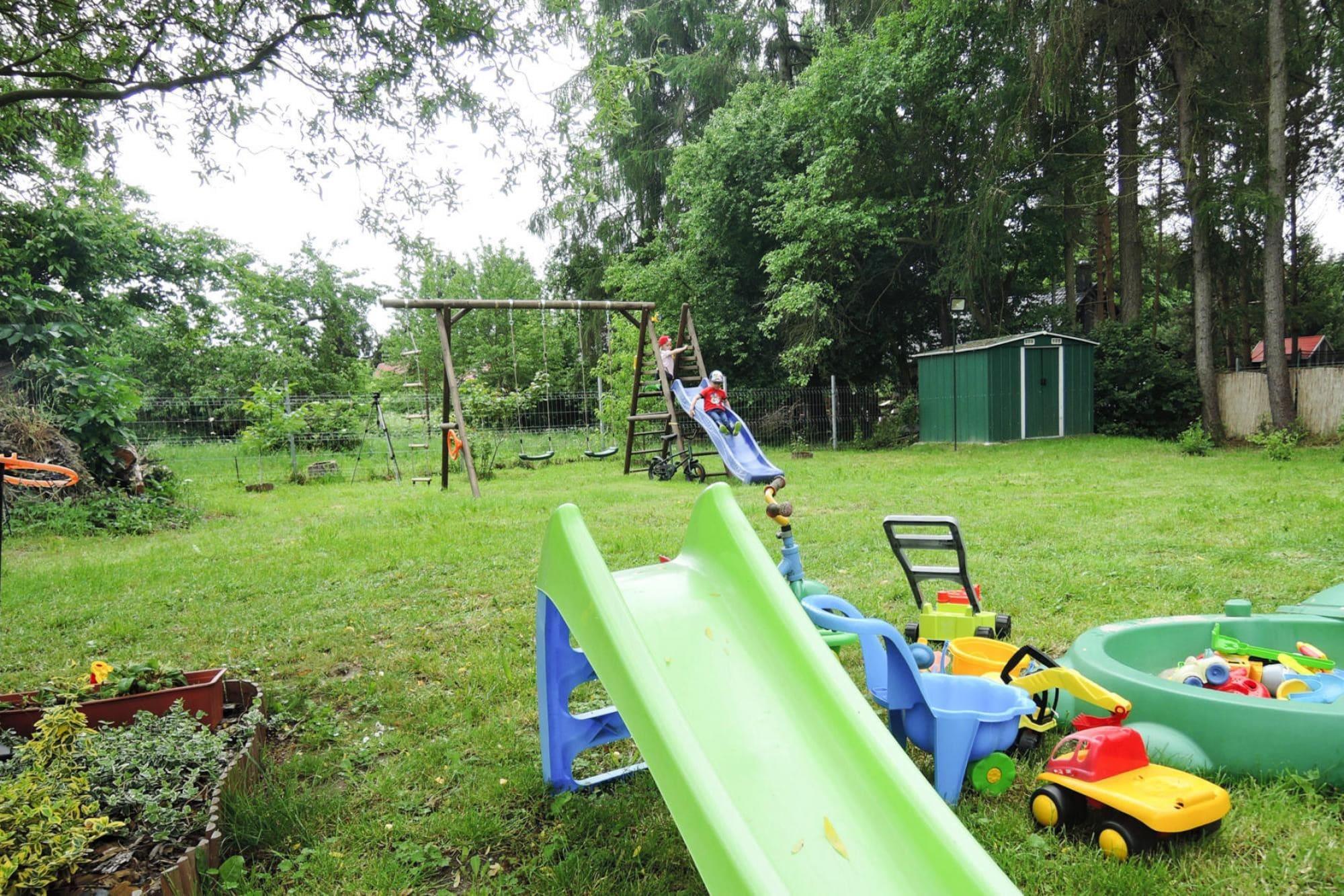 Parterre: (Küche(Esstisch, Wasserkocher, Kochendwasserhahn, Toaster, Kochherd(2 Kochplatten, elektrisch), Kaffeemaschine, Espressomaschine), Wohn-/Schlafzimmer(2x Schlafcouch 1 Pers., TV, Radio), Badezimmer(Dusche, Waschbecken, Toilette)) In der 1. Etage: (Schlafzimmer(Einzelbett, Einzelbett)) Grill, Babybadewanne, Balkon, Terrasse, Garten, Gartenmöbel, Parkplatz, Hochstuhl, Babybett (kostenpflichtig)