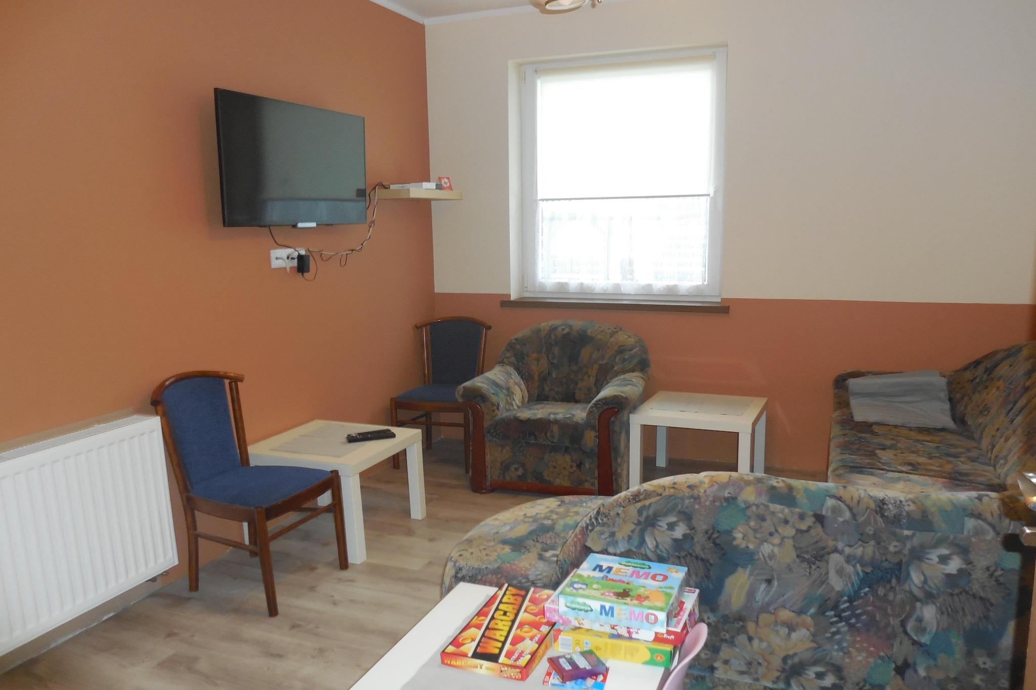 Neu gebaute Doppelhaushälfte, ideal für ein Treffen mit der Großfamilie oder den Urlaub befreundeter Familien. Bis zum See Kolczewskie sind es nur 500 m. Sie verfügen über einen hellen Essbereich mit einer langen Tafel und Flachbild-TV, einer gut ausgestatteten Küchenzeile und sechs Schlafzimmer mit je einem Bad ensuite. Die Lage ist ruhig und ein sehr guter Ausgangspunkt für Ausflüge rund um die Ostsee. HighLights : WLAN Verbrauchsabhängige Energiekosten, Bettwäsche, Handtücher, Endreinigung Mobilität : Nicht geeignet für Personen mit eingeschränkter Mobilität