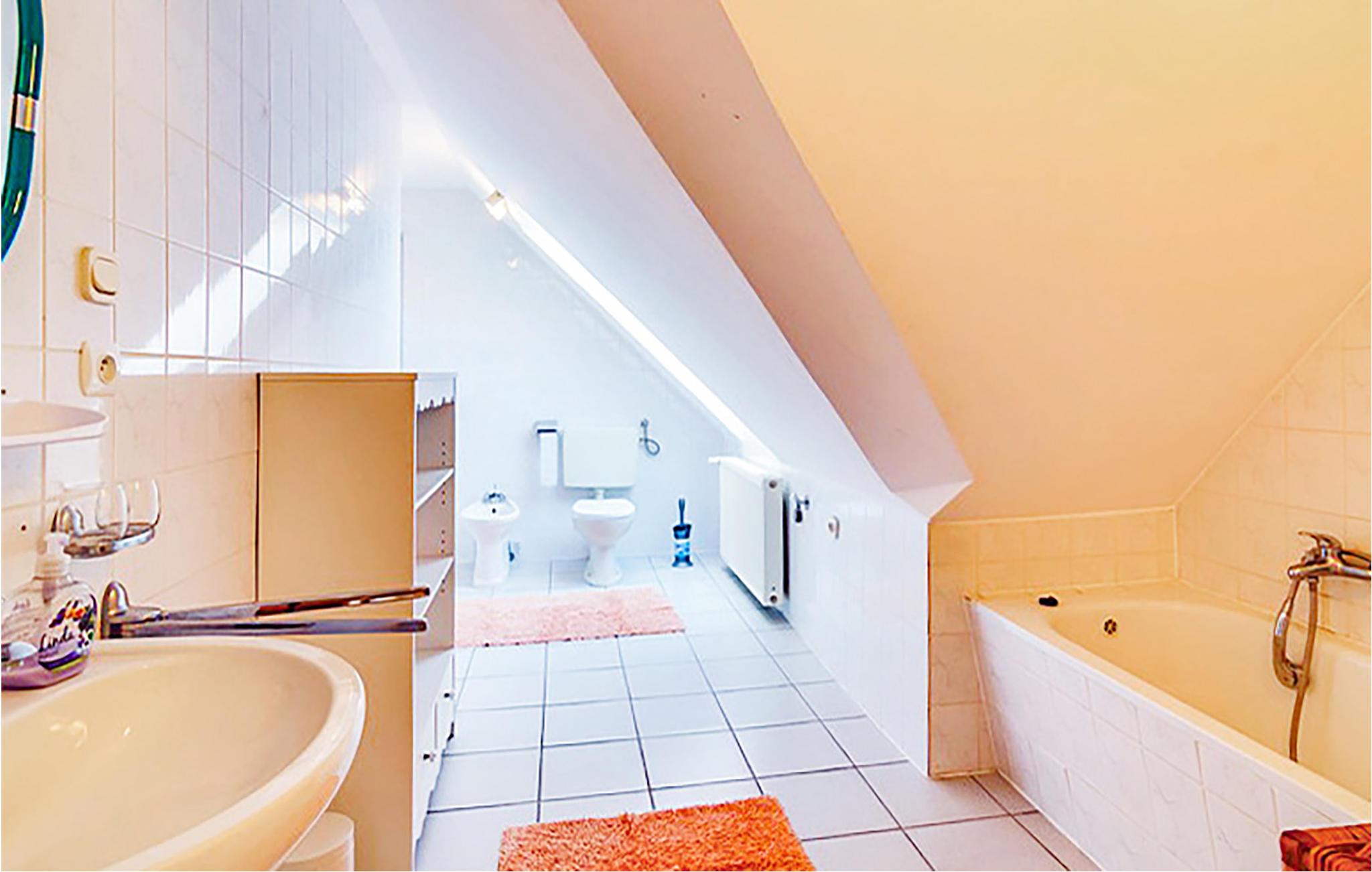 - WC mit warmem und kaltem Wasser, Dusche und Badewanne