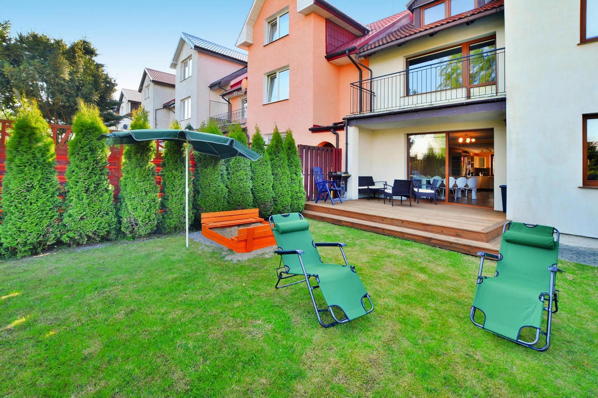 Ein geräumiges XXL-Reihenhaus mit moderner Ausstattung, in ruhiger Lage, zwei Kilometer vom Meeresstrand entfernt. Das Ortszentrum mit Geschäften, Restaurants und Bars ist 2,5 Kilometer entfernt. Das Ferienhaus bietet auf zwei Etagen ausreichend Platz für neun Personen. Der Garten mit großer Terrasse und Grill ist ein idealer Ort, um Sommerabende im Freien zu verbringen. Im Erdgeschoss gibt es ein geräumiges Wohnzimmer mit TV und einem großen Tisch. Die gut ausgestattete Küche ist teilweise mit dem Wohnzimmer verbunden. Im Erdgeschoss befindet sich außerdem ein Badezimmer mit Badewanne. Im ersten Stock befinden sich 3 separate Schlafzimmer und ein zweites Badezimmer (mit Dusche). Zur Ausstattung gehört eine Waschmaschine. Im Preis des Aufenthalts sind enthalten: Bettwäsche, Handtücher, Strom- und Wasserverbrauch, Heizung, Endreinigung, Internet, Parkplatz, Babybett, Hochstuhl. Die Wohnung befindet sich an einem solchen Ort, dass Sie bequem sowohl den ruhigeren Strand am Westufer des Flusses (Parseta) als auch den lauteren Strand am Ostufer des Flusses erreichen können, wo es mehr Attraktionen (Wasser) gibt Sport usw.). Die größte Attraktion des Spas ist der breite Strand. Darüber hinaus gibt es viele Spazierwege im Seepark, entlang der Strandpromenade, am historischen Pier und in der Altstadt. Es lohnt sich, den örtlichen Leuchtturm, das Ozeanarium, den Seehafen und die Kathedrale zu besuchen. Attraktionen in der Umgebung: Für Familien mit Kindern empfehlen wir den Besuch des Vergnügungsparks Pomerania Fun Park. Es handelt sich um einen ganzjährig geöffneten Park im Dorf Dygowo (ca. 15 km von Kolobrzeg entfernt). Es bietet zahlreiche Karussells und Trampoline. Es gibt ein Wikingerdorf, einen Mini-Zoo und viele andere Attraktionen. In Kolberg lohnt sich auch der Besuch eines Indianerdorfes, wo Sie etwas über die Regionen der indigenen Kulturen Nordamerikas erfahren können.