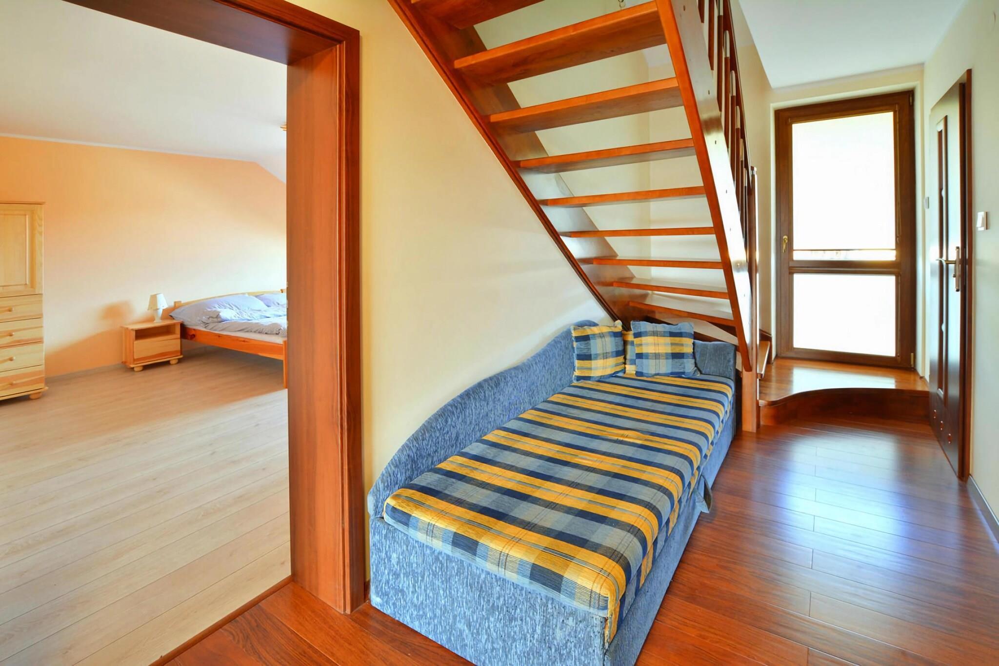Ein geräumiges XXL-Reihenhaus mit moderner Ausstattung, in ruhiger Lage, zwei Kilometer vom Meeresstrand entfernt. Das Ortszentrum mit Geschäften, Restaurants und Bars ist 2,5 Kilometer entfernt. Das Ferienhaus bietet auf zwei Etagen ausreichend Platz für neun Personen. Der Garten mit großer Terrasse und Grill ist ein idealer Ort, um Sommerabende im Freien zu verbringen. Im Erdgeschoss gibt es ein geräumiges Wohnzimmer mit TV und einem großen Tisch. Die gut ausgestattete Küche ist teilweise mit dem Wohnzimmer verbunden. Im Erdgeschoss befindet sich außerdem ein Badezimmer mit Badewanne. Im ersten Stock befinden sich 3 separate Schlafzimmer und ein zweites Badezimmer (mit Dusche). Zur Ausstattung gehört eine Waschmaschine. Im Preis des Aufenthalts sind enthalten: Bettwäsche, Handtücher, Strom- und Wasserverbrauch, Heizung, Endreinigung, Internet, Parkplatz, Babybett, Hochstuhl. Die Wohnung befindet sich an einem solchen Ort, dass Sie bequem sowohl den ruhigeren Strand am Westufer des Flusses (Parseta) als auch den lauteren Strand am Ostufer des Flusses erreichen können, wo es mehr Attraktionen (Wasser) gibt Sport usw.). Die größte Attraktion des Spas ist der breite Strand. Darüber hinaus gibt es viele Spazierwege im Seepark, entlang der Strandpromenade, am historischen Pier und in der Altstadt. Es lohnt sich, den örtlichen Leuchtturm, das Ozeanarium, den Seehafen und die Kathedrale zu besuchen. Attraktionen in der Umgebung: Für Familien mit Kindern empfehlen wir den Besuch des Vergnügungsparks Pomerania Fun Park. Es handelt sich um einen ganzjährig geöffneten Park im Dorf Dygowo (ca. 15 km von Kolobrzeg entfernt). Es bietet zahlreiche Karussells und Trampoline. Es gibt ein Wikingerdorf, einen Mini-Zoo und viele andere Attraktionen. In Kolberg lohnt sich auch der Besuch eines Indianerdorfes, wo Sie etwas über die Regionen der indigenen Kulturen Nordamerikas erfahren können.