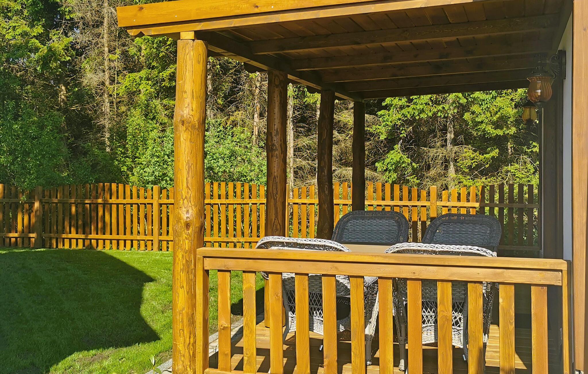 Erholen Sie sich in diesem charmanten Ferienhaus mit gemütlicher Atmosphäre und überdachter Terrasse.