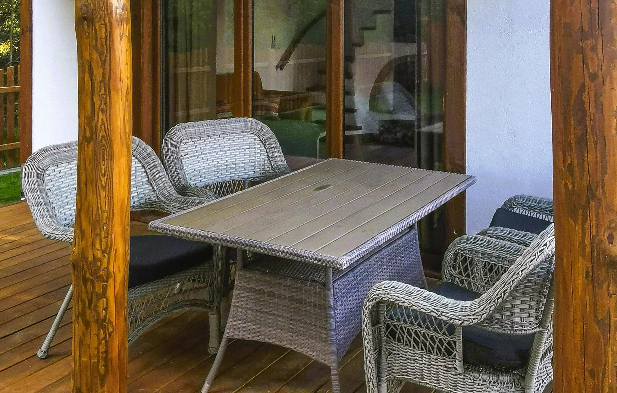 Willkommen in diesem modernen und gleichzeitig rustikal gestalteten Ferienhaus, das sich perfekt für einen entspannten Urlaub mit Familie oder Freunden eignet. Der offene Wohnraum bietet Ihnen eine gut ausgestattete Küche, einen gemütlichen Wohnzimmerbereich mit Kaminofen und direkten Zugang zur überdachten Terrasse. Hier können Sie gemeinsam kochen, spielen oder einfach die ruhige Atmosphäre genießen. Im oberen Stockwerk finden Sie Schlafzimmer, die Ihnen erholsame Nächte bieten.
