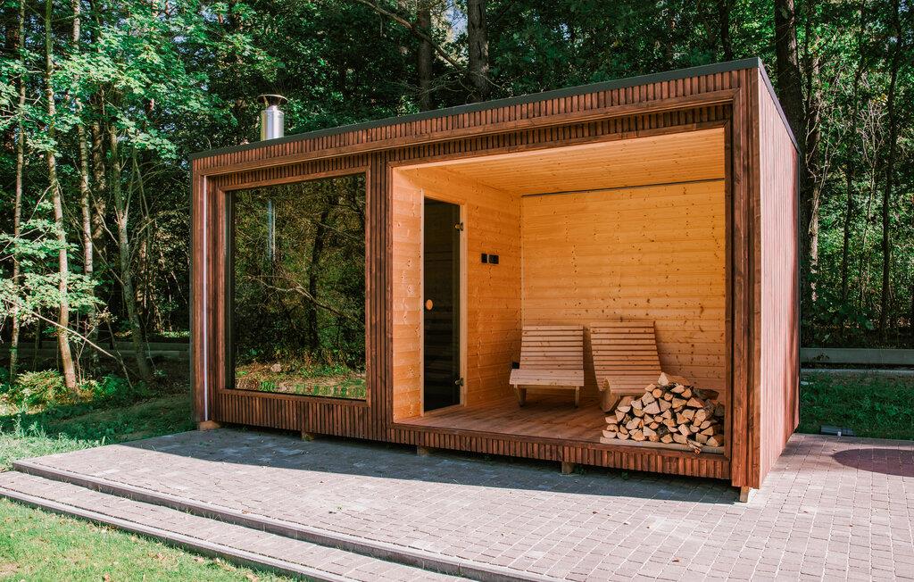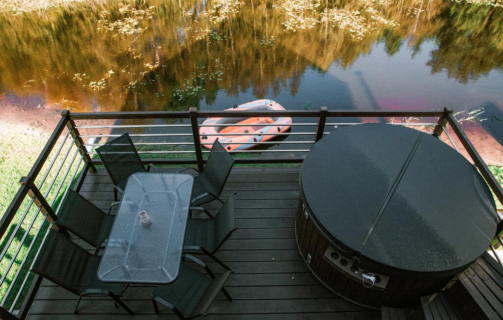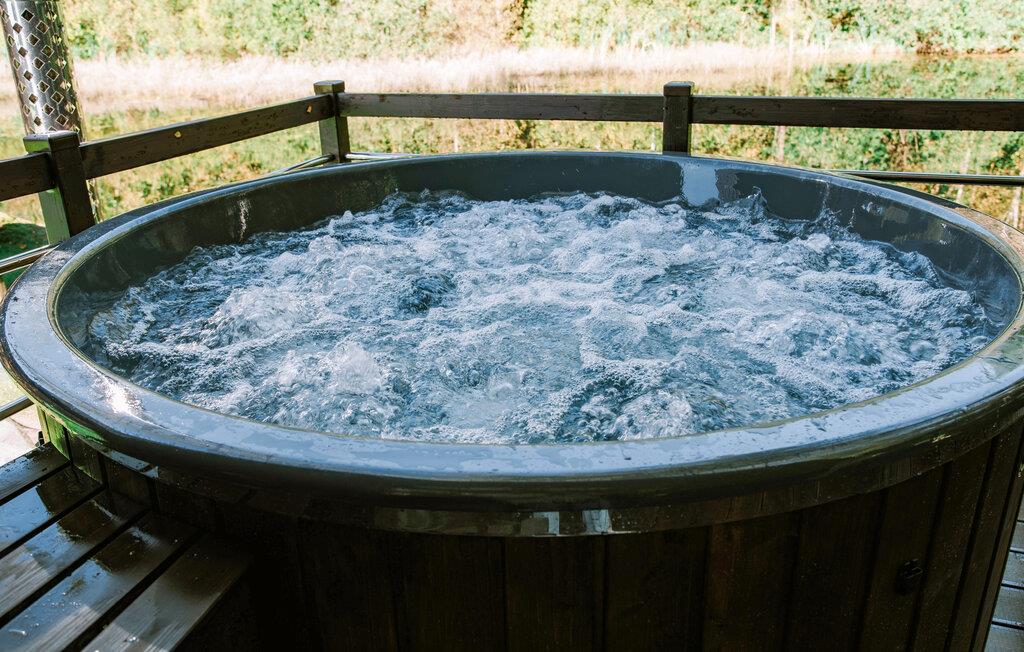 Treten Sie hinaus auf die Terrasse und genießen Sie die ruhige Lage direkt am Wasserlauf. Gartenmöbel laden zum Verweilen im Freien ein. Nutzen Sie den privaten Whirlpool auf der Terrasse und entspannen Sie in warmem Wasser. In der Anlage stehen Ihnen zudem eine Sauna sowie eine Hängematte im Garten zur Verfügung, die zum Abschalten einladen. Lassen Sie Ihre Kinder die Spielgeräte auf dem gemeinsamen Grundstück entdecken. Verbringen Sie auch gesellige Stunden an der Feuerstelle.