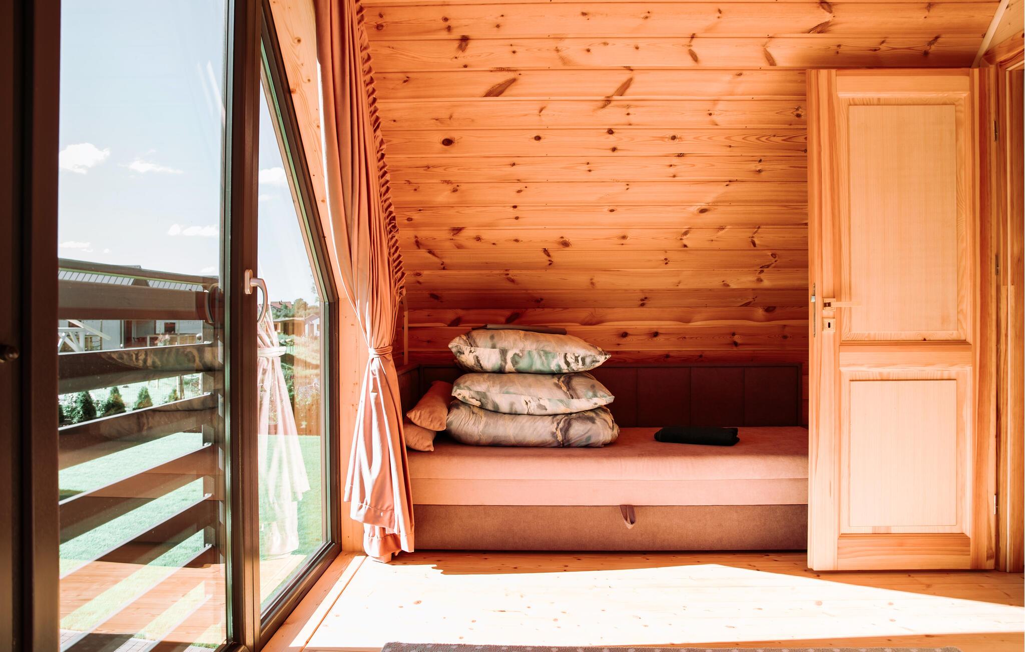 Lassen Sie sich von der warmen Holzgestaltung und der behaglichen Atmosphäre Ihres gemütlichen Ferienhauses empfangen. Zahlreiche schöne Details heben das angenehme Ambiente hervor. Nehmen Sie auf dem Sofa Platz und genießen Sie ruhige Stunden mit einem guten Buch. Nutzen Sie die kleine, moderne Küche, um gemeinsam Ihre Lieblingsgerichte zu zaubern.