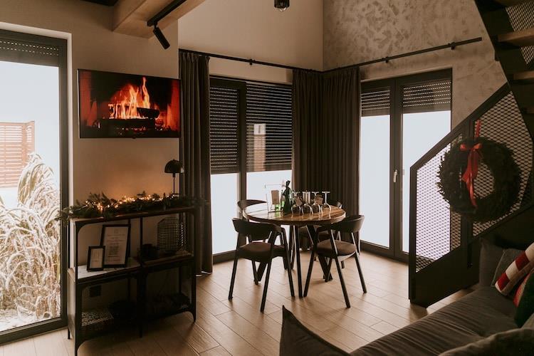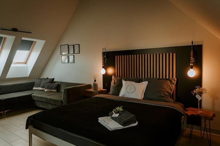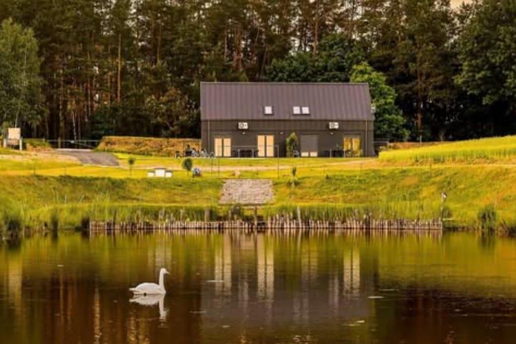 Eine traumhafte Lage, eingebettet in endlose kaschubische Wiesen, fernab von Hektik und Trubel. Inmitten dieser wunderschönen Naturlandschaft steht ein modernes und sehr komfortables zweistöckiges Haus, das in zwei Hälften unterteilt ist. Jede Hälfte verfügt über einen eigenen Eingang und separate Terrassen mit Gartenmöbeln, Grillmöglichkeiten und – besonders hervorzuheben – einem privaten Whirlpool. Im Erdgeschoss befinden sich ein geräumiges Wohnzimmer (TV, Doppelschlafsofa, Esstisch, Kamin), eine voll ausgestattete Küche, ein großes Doppelzimmer und ein Badezimmer mit Dusche. Im Obergeschoss erwartet Sie ein einzigartiges, großes Schlafzimmer mit komfortabler Badewanne und ein zweites Badezimmer mit Dusche. Zentralheizung und Klimaanlage sowie ein Kamin im Wohnzimmer (Holz im Preis inbegriffen) sind vorhanden. WLAN steht Ihnen ebenfalls zur Verfügung. Das gesamte weitläufige Gelände der Anlage (ca. 5 Hektar) steht den Gästen beider Haushälften exklusiv zur Verfügung. Jede Gästegruppe verfügt über einen eigenen privaten Bereich mit Terrasse und einem Ort zum ungestörten Entspannen. Auf dem Gelände befinden sich sichere Parkplätze sowie zwei Teiche mit Steg und dahinter eine elegante Gartenhütte – ein idealer Ort für verschiedene Veranstaltungen wie Junggesellen- und Junggesellinnenabschiede. Die Hütte kann gegen Aufpreis gemietet werden. Fahrräder stehen den Gästen ebenfalls gegen Gebühr zur Verfügung. Im Preis inbegriffen sind: Bettwäsche, Handtücher, Strom, Wasser, Heizung, Klimaanlage, Brennholz, Whirlpool, Endreinigung, Parkplatz und Internet. Das Ferienresort liegt in der Nähe von Koscierzyna, im Herzen der Kaschubei. Die malerische Landschaft Kaschubiens ist ohne ihre zahlreichen, unberührten Seen undenkbar. In der Umgebung gibt es unzählige solcher Seen: den Wierzysko-See (2,8 km) mit einem Kajak-Hafen und den Zagnanie-See (3,4 km) mit einem wunderschönen Strand. Die Dreistadt mit ihren Stränden ist nur eine Autostunde entfernt.