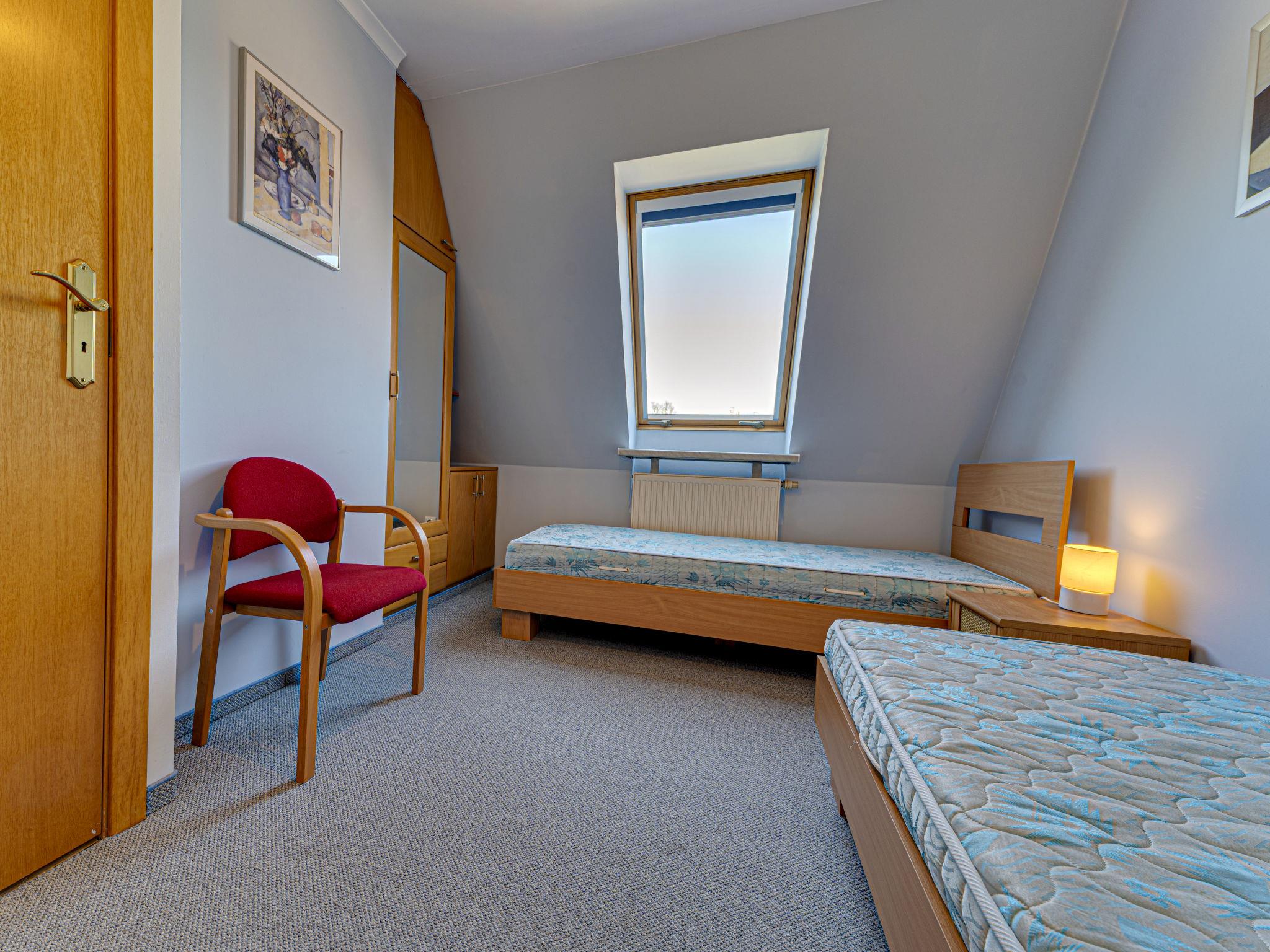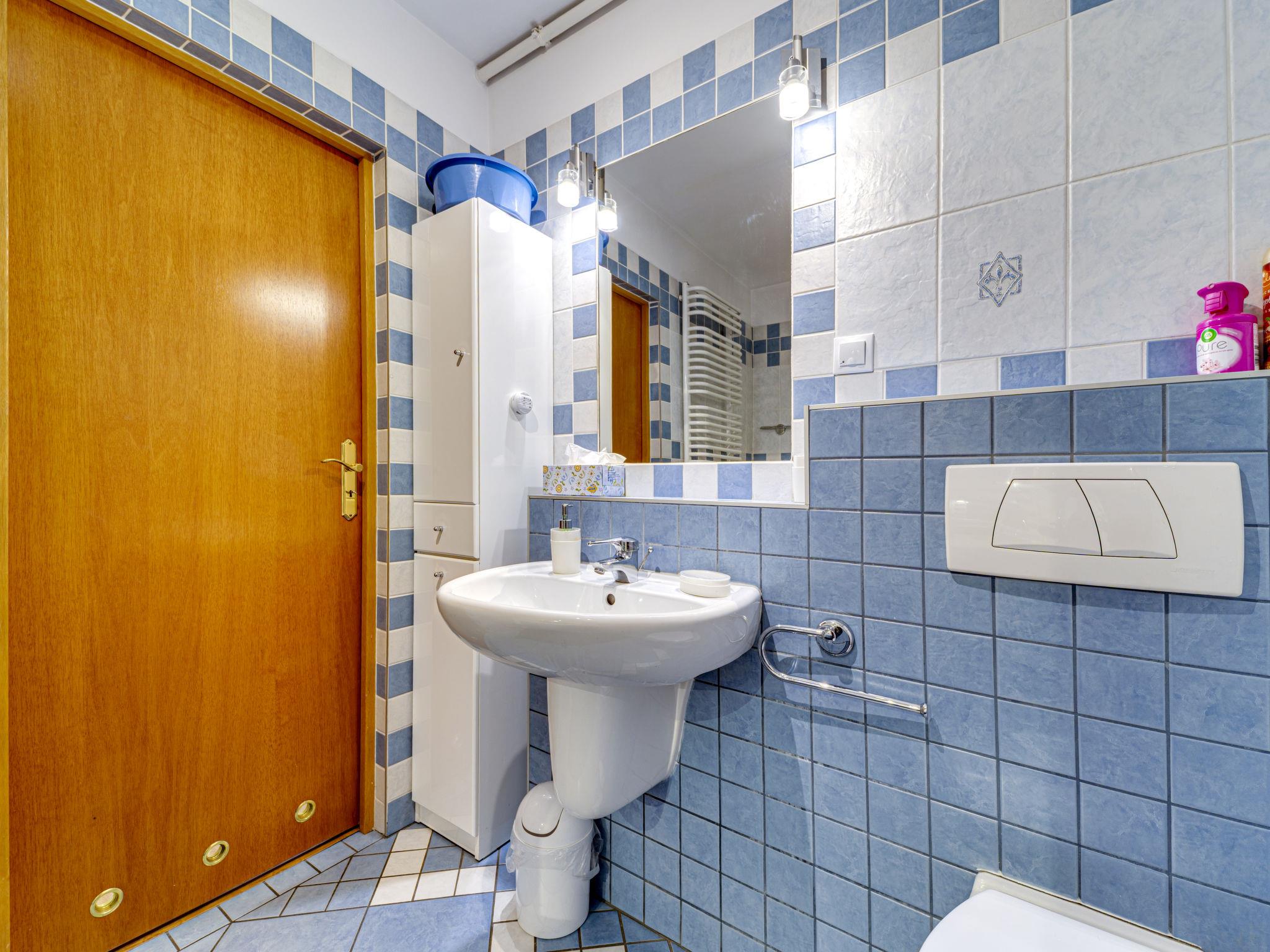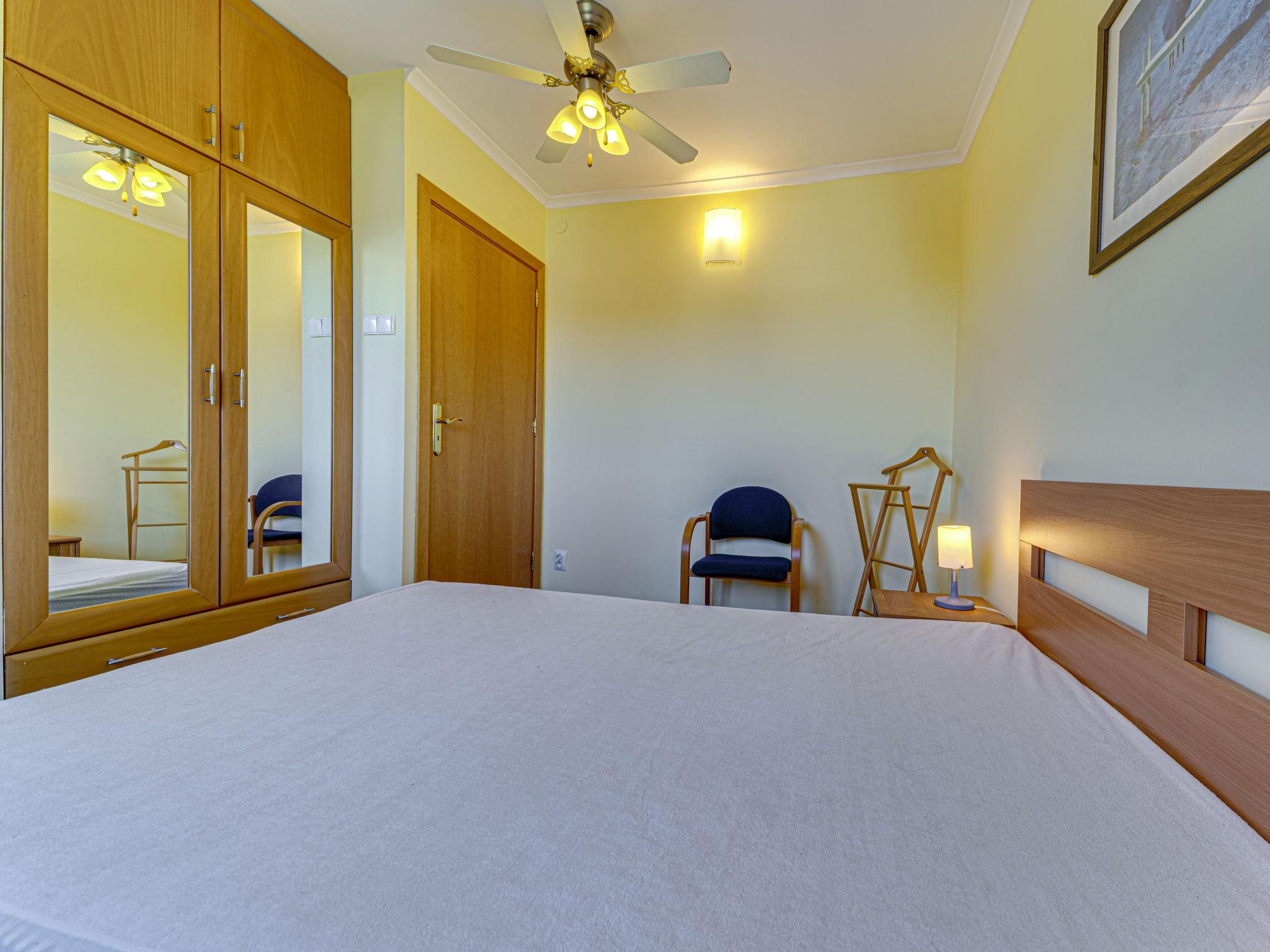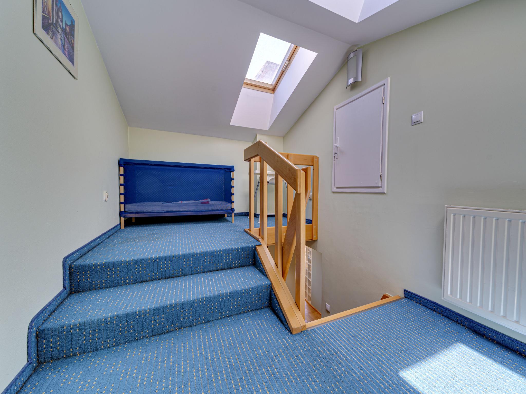 3-Zimmer-Wohnung 70 m2, im Dachgeschoss. Zweckmässig und schön eingerichtet: offenes Wohnzimmer mit 2 Doppeldiwanbetten (140 cm), TV, Radio, CD, Stereoanlage und DVD. Ausgang zum Balkon. 1 abgeschrägtes kleines Zimmer 9 m2 mit 1 Doppelbett (140 cm, Länge 200 cm). 1 abgeschrägtes kleines Zimmer 8 m2 mit 2 Betten (80 cm, Länge 200 cm). Offene Küche (Backofen, Geschirrspüler, 4 Glaskeramikplatten, Mikrowelle) mit Bar. Bad/WC. Balkon. Zur Verfügung: Kinderhochstuhl, Babybett bis 2 Jahre, Haartrockner. Internet (WLAN). Bitte beachten: TV nur PL. Rauchmelder. 52031321214