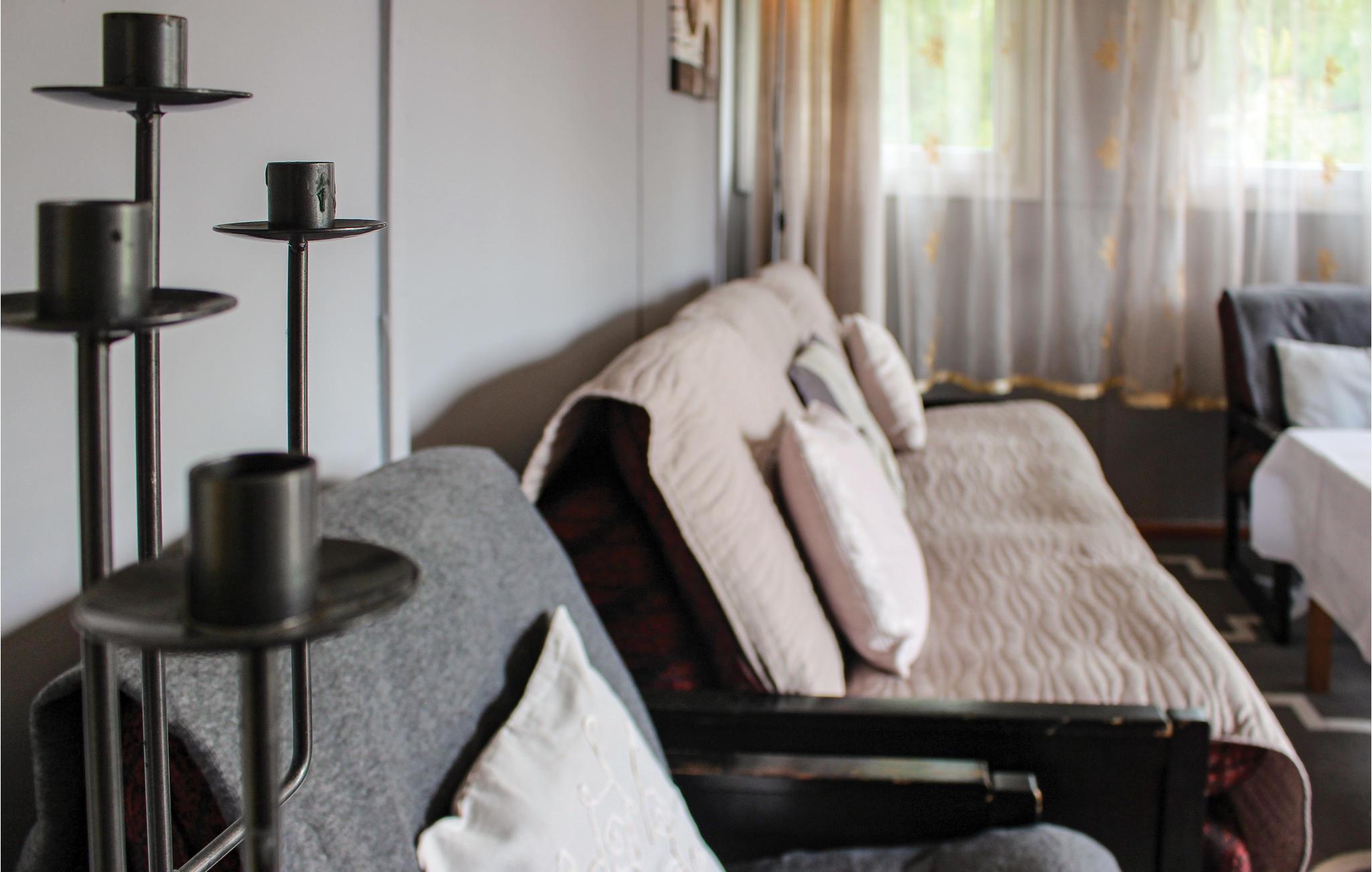 Dieses einfache Ferienhaus bietet Ihnen eine ruhige Unterkunft und ist Teil eines kleinen Feriencenters. Gemeinsam mit zwei weiteren Häusern liegt es auf einem leicht erhöhten Grundstück, sodass Sie in naturnaher Atmosphäre Ihren Urlaub genießen können. Machen Sie es sich auf den gemischten, funktionalen Möbeln bequem. Nutzen Sie das Sofa und die Sitzgelegenheiten für gemeinsame Abende.