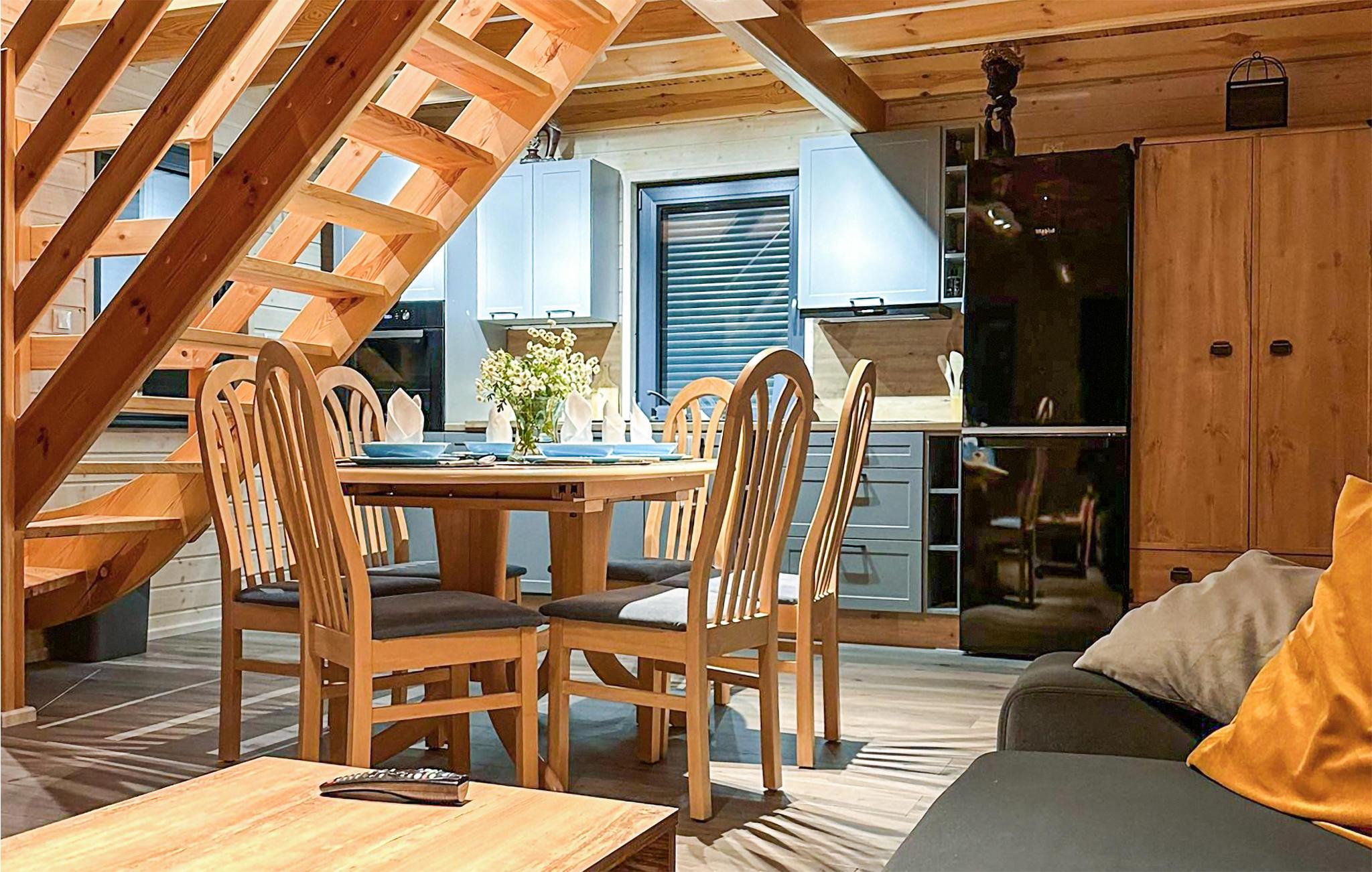 Das Haus empfängt Sie nahe dem schönen Kucki-See in Jarowierz und ist die perfekte Wahl für Urlauber, die ein Ferienhaus in der Nähe eines Angelsees suchen, dabei aber nicht auf ein bisschen Luxus verzichten wollen. Die Unterkunft ist gemütlich und modern eingerichtet und es wird Ihnen an nichts fehlen. Nach einem aktiven Tag können Sie gemeinsam in der Küche zaubern und sich es am Tisch gemütlich machen.Verbringen Sie eine herrliche Zeit im Garten, wo Ihre Kinder schaukeln und Sandburgen bauen können, Sie können sich aber auch gegenseitig im Volleyball herausfordern oder Ihre Fähigkeiten an der Kletterwand ausprobieren. Lesen Sie das Buch entspannt auf der Hollywoodschaukel, das Sie immer schon lesen wollten, oder genießen Sie ein Bad im Whirlpool unter freiem Himmel. Die Fasssauna und der Whirlpool können benutzt werden, wenn Sie Brennholz haben. Das Brennholz kann vom Eigentümer gekauft werden. Der Angel- und Badesee erreichen Sie nach einem kurzen Spaziergang.