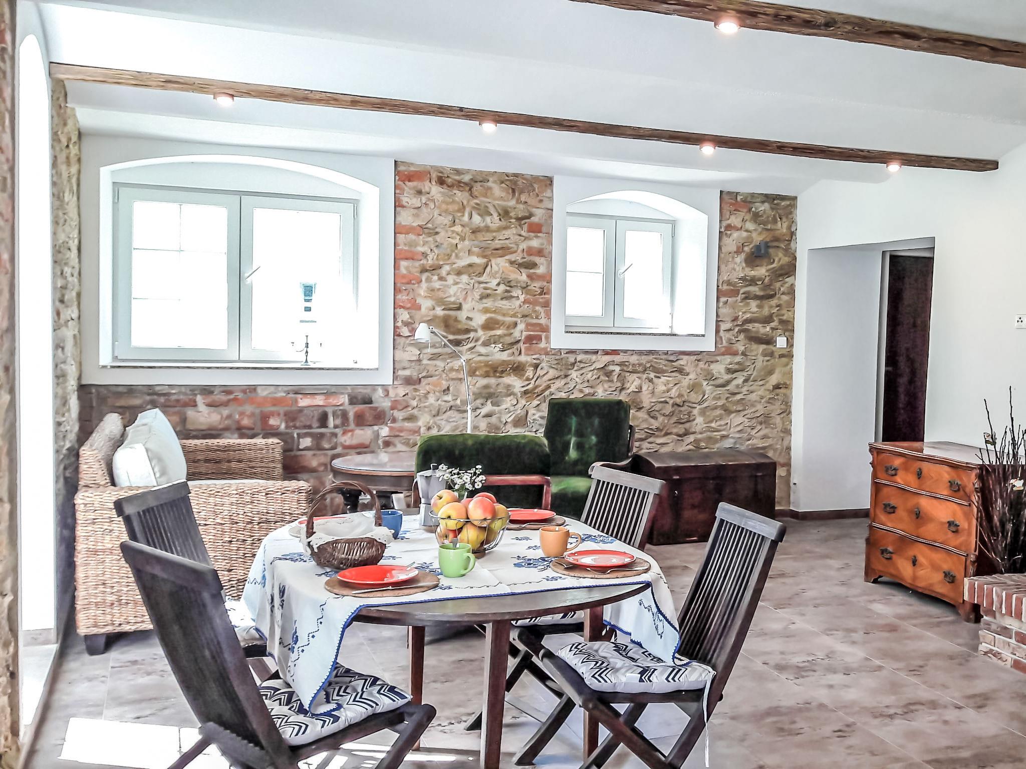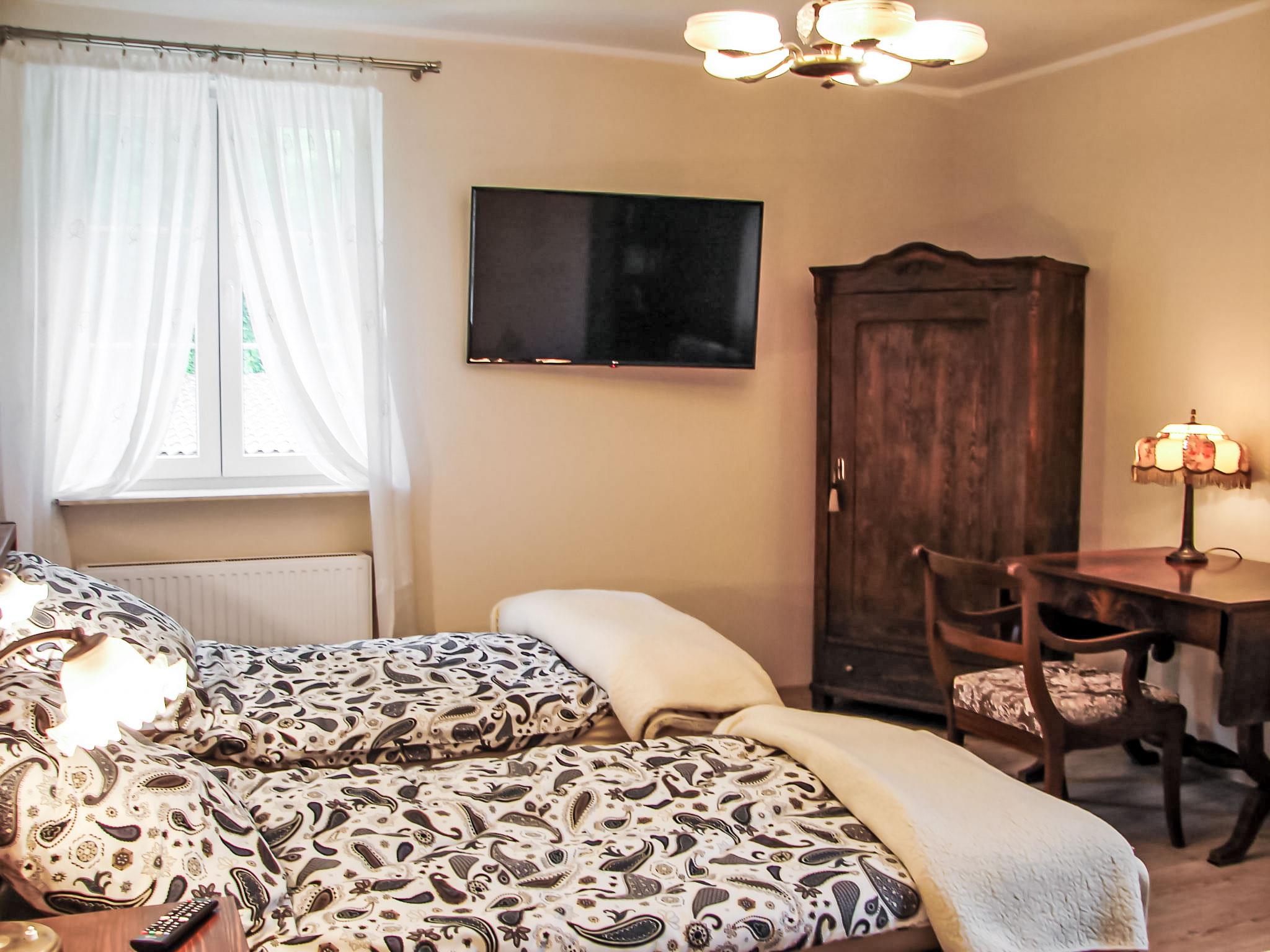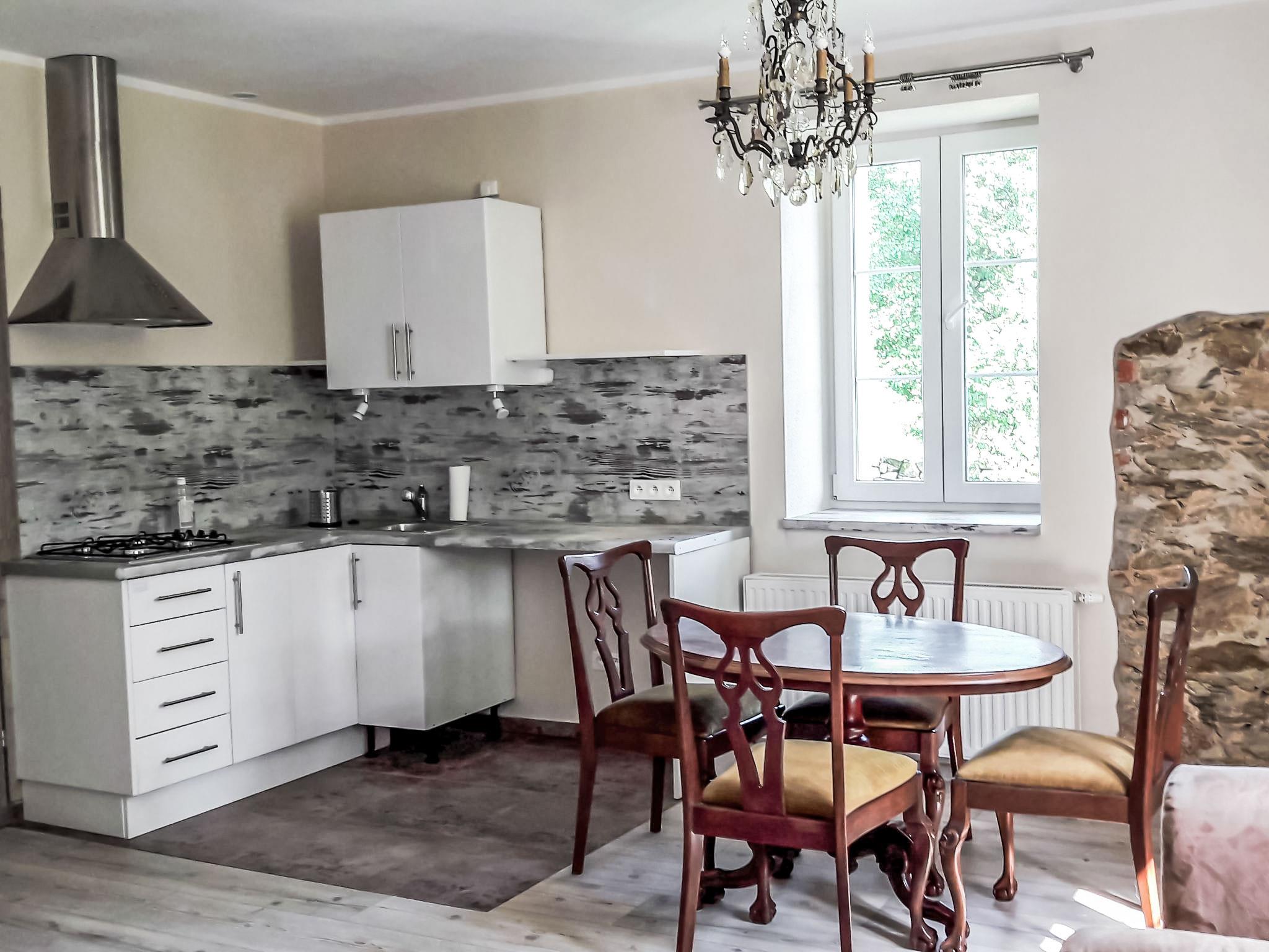 Schönes, freistehendes, komfortables Bauernhaus "Dom na Skraju", Baujahr 1880, renoviert im Jahre 2018. Ausserhalb des Ortes, ruhige, sonnige Lage, im Grünen. Zur Mitbenutzung: Grundstück 5'000 m2 (eingezäunt). Zur Alleinbenutzung: Park 2'000 m2, Garten 1'000 m2, Wiese 2'000 m2, Liegewiese, Schwimmbad rund (4,6 m Durchmesser, 110 - 110 cm tief, saisonale Verfügbarkeit: 01.Jun. - 30.Sep.). Volleyball, Badminton, Feuerstelle, Grillhaus, Kinderspielplatz (Schaukel). Im Hause: Trampolin, Zentralheizung. Zur Verfügung: Fahrräder (4). Parkplatz beim Haus auf dem Grundstück. Supermarkt 2 km, Restaurant 2.5 km, Bushaltestelle 50 m. Gondelbahn 23 km, Skipisten 23 km. Nahe gelegene Sehenswürdigkeiten: Zamek Czocha w Suchej 21 km, Termy Cieplickie 28 km, Muzeum Ceramiki w Boleslawcu 32 km. Bekannte Seen in der Umgebung sind gut erreichbar: splywy kajakowe i pontonowe 16 km. Bitte beachten: Fahrzeug empfohlen.