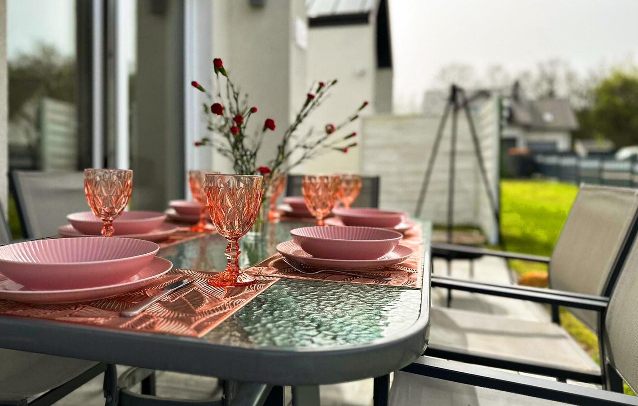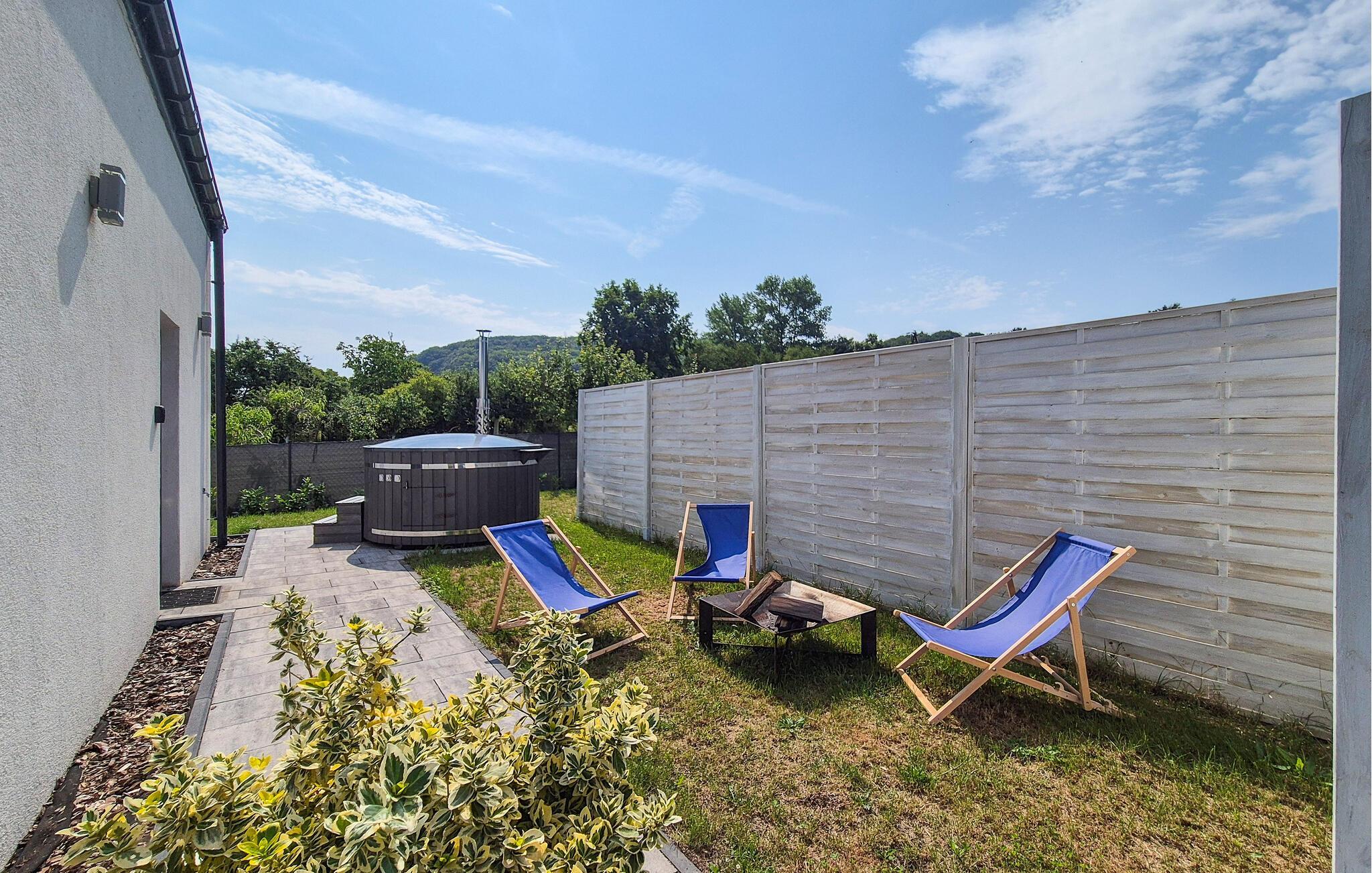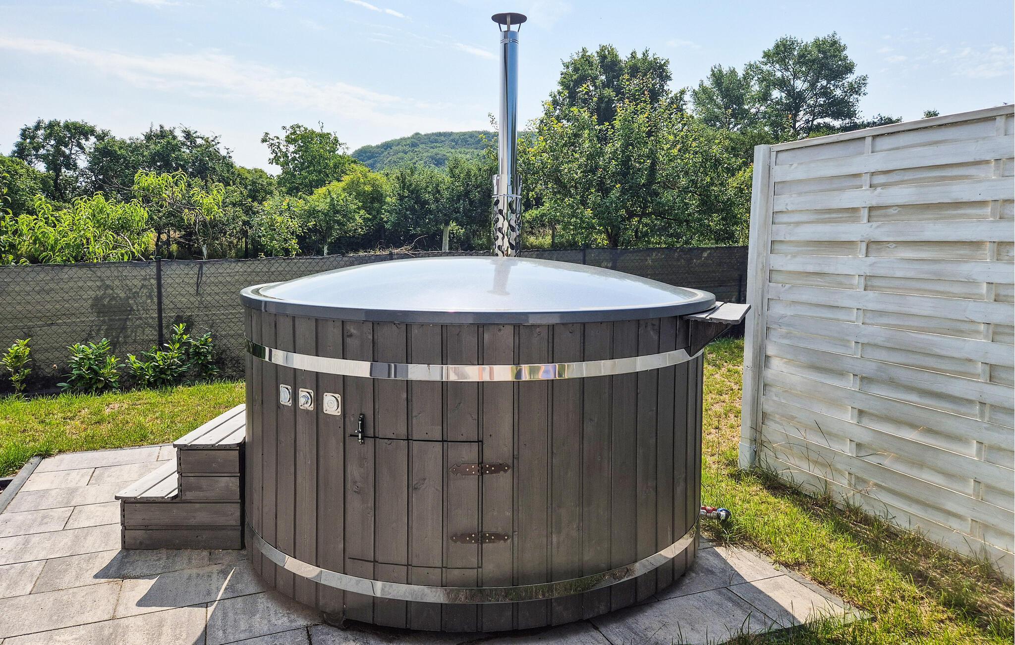 Starten Sie Ihren Tag auf der einladenden Terrasse, die mit komfortablen Gartenmöbeln ausgestattet ist. Ein besonderes Highlight ist das Finnische Holzbad, das zu entspannten Momenten einlädt. Genießen Sie das warme Wasser und die frische Luft in vollen Zügen. Beginnen Sie Ihren Morgen mit einem Frühstück unter freiem Himmel, umgeben von der gepflegten Gartenlandschaft. Abends können Sie den Grill nutzen, um ein leckeres BBQ zu zaubern und gemeinsam mit Ihren Liebsten gemütliche Stunden zu verbringen.