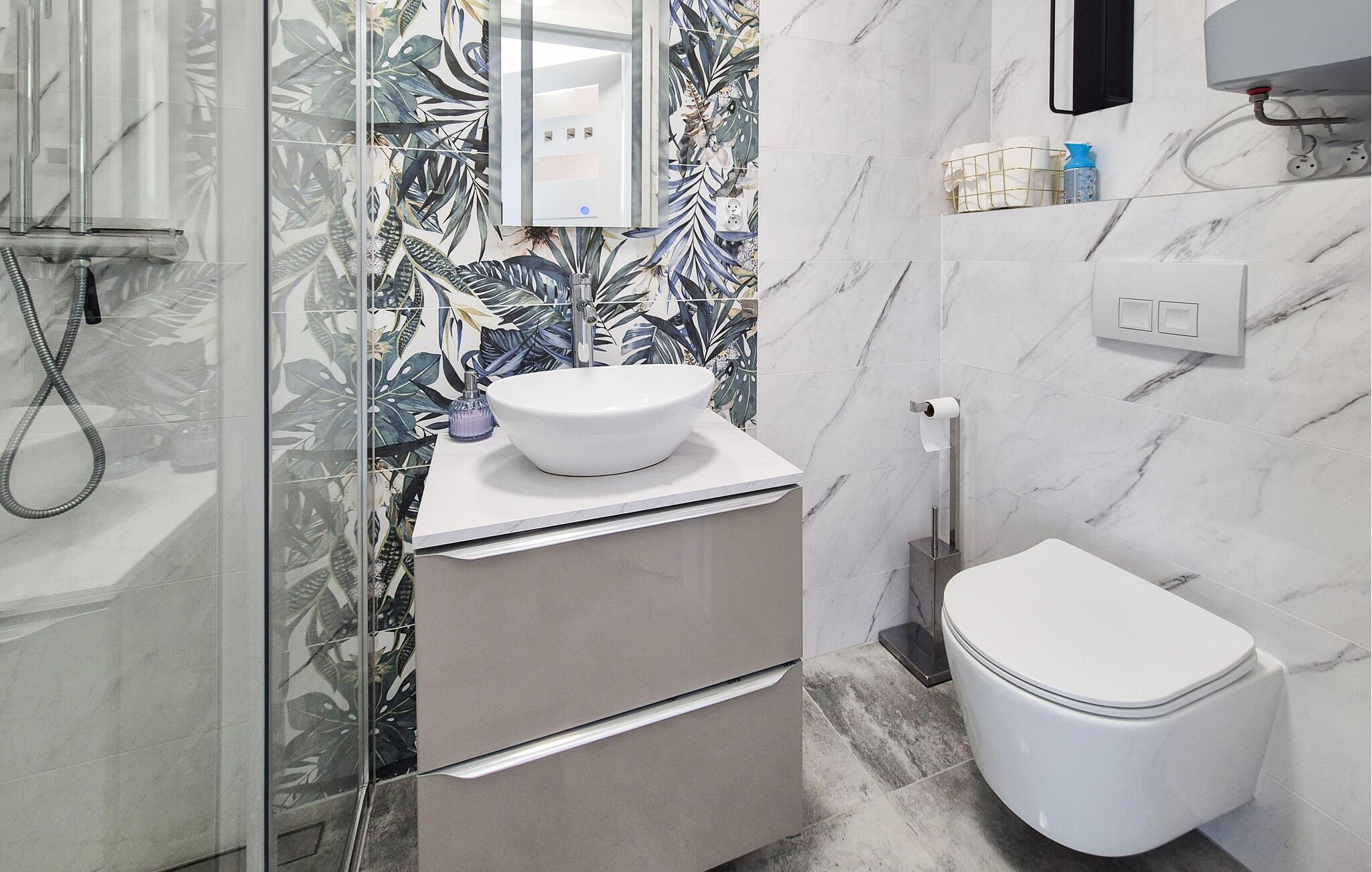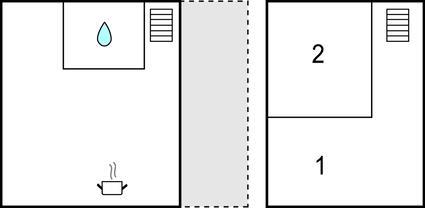 Badezimmer 4m2 (nr. 1) - WC. Warmes und kaltes Wasser. Dusche