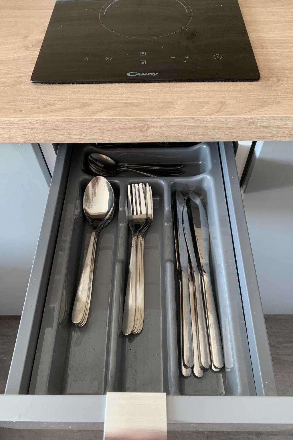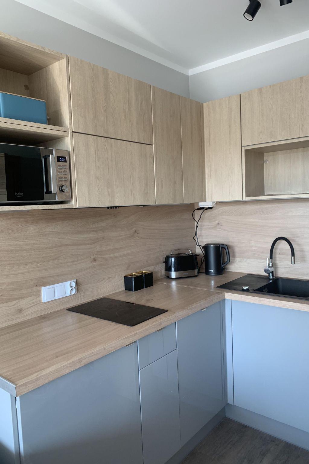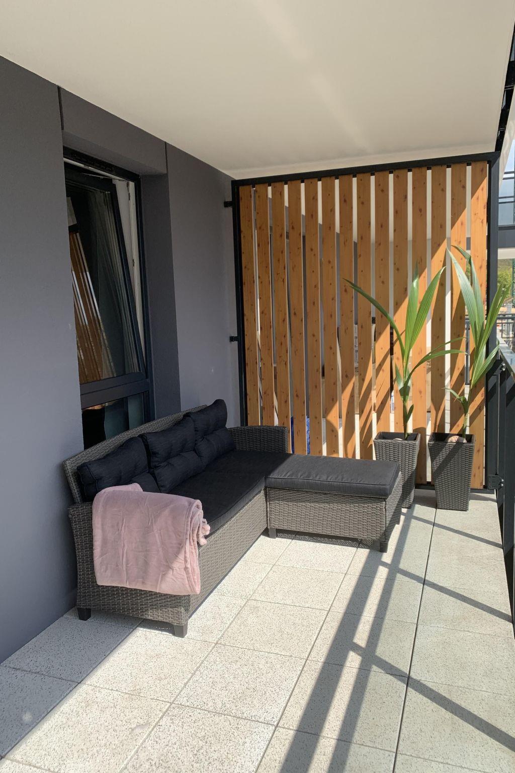 Die Wohnung besteht aus einem Schlafzimmer mit einem Doppelbett, das auf Wunsch in zwei getrennte Betten verwandelt werden kann, und einem Wohnzimmer mit Kochnische. Dieser Bereich verfügt über ein Doppelschlafsofa und Esstisch, 4 Stühle, Flachbild-TV. Die Küchenzeile ist komplett ausgestattet: Kaffeemaschine, Toaster, Induktionskochfeld, Geschirrspüler, Wasserkocher, Mikrowelle, Teller, Besteck, Töpfe, Pfannen und andere notwendige Küchenutensilien. Das Badezimmer hat eine Duschkabine. Handtücher, Bettwäsche und Toilettenartikel werden kostenlos zur Verfügung gestellt. Die Wohnung hat eine große, gemütliche Terrasse - 11 m2. Die Terrasse ist mit einem Esstisch, 4 Stühlen und einem Sofa mit Chaiselongue ausgestattet. Die Wohnung verfügt über einen kostenlosen Parkplatz in der Garage unter dem Gebäude. Das Anwesen ist überwacht.