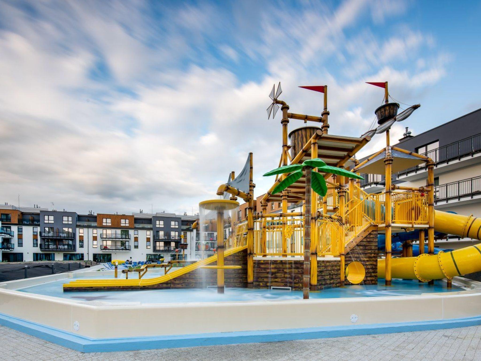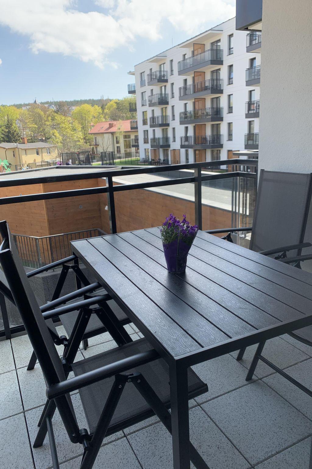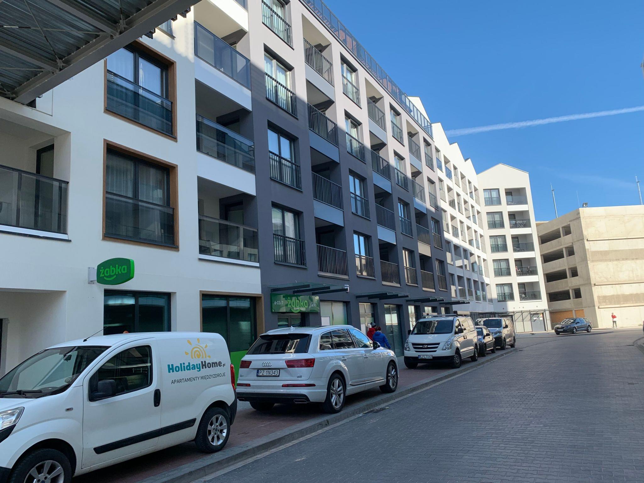 Die Wohnung befindet sich auf dem Gelände des Bel Mare Resorts. Die Anlage verfügt über ein Hallenbad, Sauna, Jacuzzi - gegen Aufpreis, Terrasse mit Mini-Aquapark und Ruhebereich - gegen Aufpreis, Kinderspielzimmer, X-Games, Kunsteisbahn, Spielplatz, Billard - gegen Aufpreis. Auf dem Gelände gibt es 2 Restaurants Bella, wo Sie Frühstück und Abendessen kaufen können, das Restaurant Tawerna, das Gerichte à la carte serviert, eine Getränkebar. Es gibt einen Schönheitssalon auf dem Gelände.Zabka- und Lidl-Geschäfte befinden sich nebenan, ein Stück weiter Netto. Eine weitere Attraktion wird in Zukunft der neu errichtete Aqua Park sein. Nebenan befindet sich ein Wesole Miasteczko. Nahegelegene Sehenswürdigkeiten: Wachsfigurenmuseum, Europäisches Wisentreservat, Wolin-Nationalpark, Aussichtspunkt Kawcza Góra, Gerhard Ford.