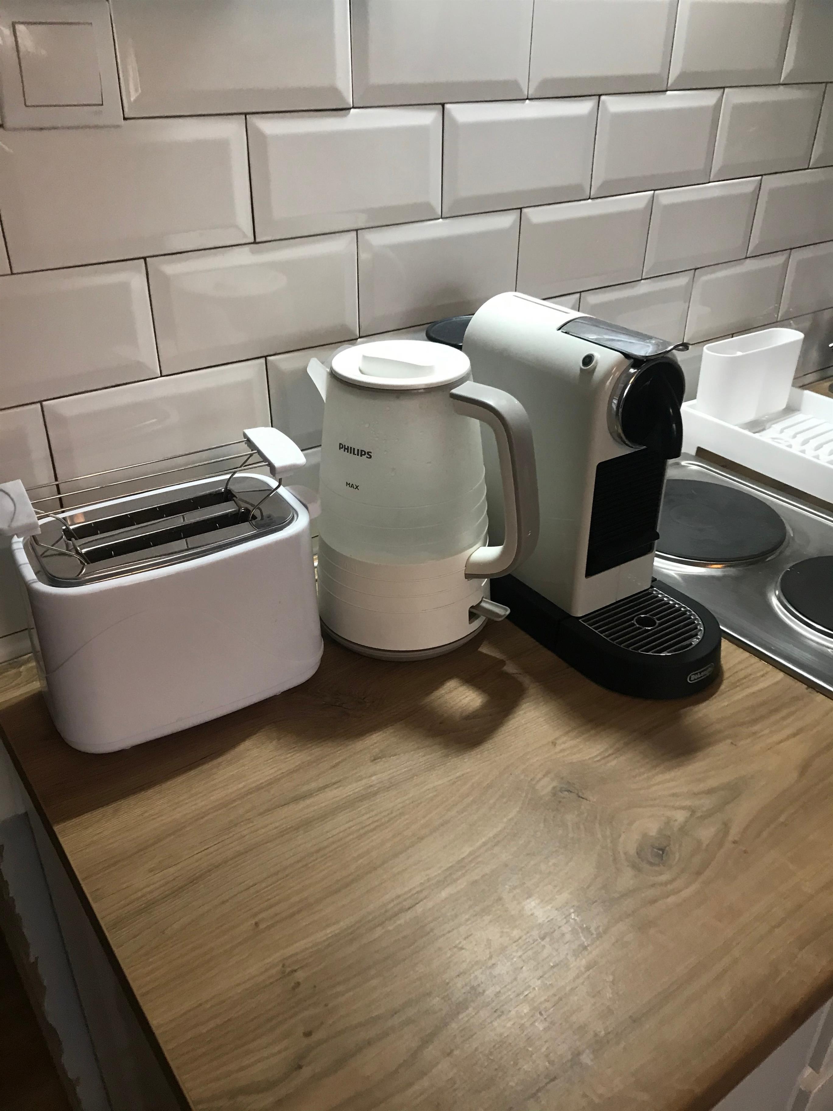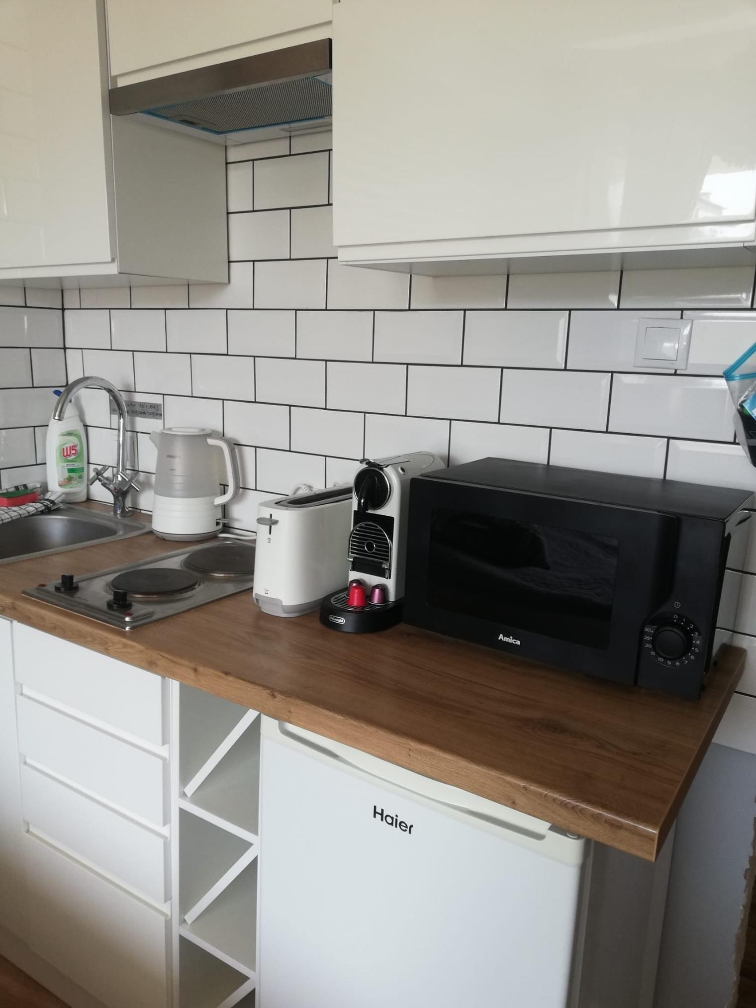 - Kleine Küche mit 2 Herdplatten, Wasserkocher, Tee, Nespresso Maschine, Kaffee zum Selbermachen inklusive. Toaster vorhanden.