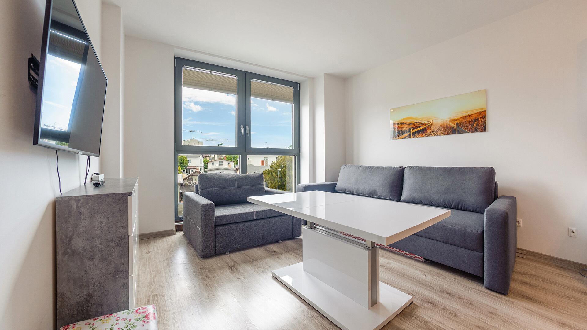 • Haustiere sind in der ausgewählten Wohnung erlaubt. Die Kosten für den Aufenthalt mit einem Haustier betragen 40 PLN pro Tag.