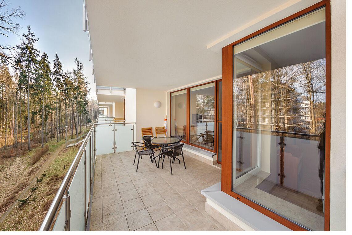 Aquamarina ist ein modernes Apartmentkomplex. Es befindet sich direkt am Wald, was die Nähe zur Natur fördert. Um den Strand zu erreichen, muss man nur eine Düne überqueren. Die Lage ist ideal für Menschen, die Ruhe und Entspannung schätzen. Die Apartments sind komfortabel eingerichtet und ausgestattet, die Fenster der meisten von ihnen sind zum Wald hin ausgerichtet.