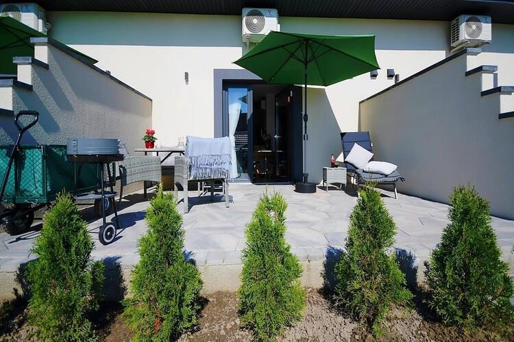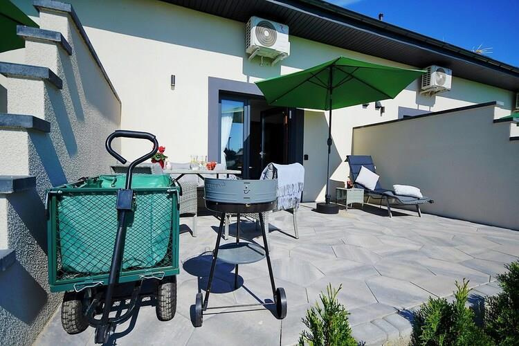 Parterre: (offene Küche(Kochplatte(Induktion), Wasserkocher, Dunstabzugshaube, Kaffeemaschine, Mikrowelle, Kühl-/Gefrierkombination), Wohn/Esszimmer(Doppelschlafcouch(160 x 200 cm), TV(Flatscreen), Esstisch), Badezimmer(Dusche, Waschbecken, Toilette)) In der 1. Etage: (Schlafzimmer(Doppelbett), Schlafzimmer(Doppelschlafcouch(140 x 190 cm))) Internet, Parkplatz, Spielplatz, Liegewiese, Klimaanlage, Terrasse, Garten(Gemeinschaftliche Nutzung mit anderen Gästen, umzäunt), Gartenmöbel, Liegen, Grill(Holzkohle), Trampolin, Rutsche(Gemeinschaftliche Nutzung mit anderen Gästen), Sonnenschirm, Schaukel