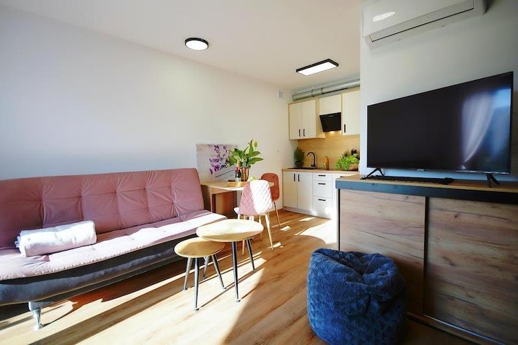 Am Rande einer charmanten Küstensiedlung befindet sich ein Familienferienresort, das Unterkünfte in mehrstöckigen Reihenhäusern und viel Grünfläche für Kinder für verschiedene Spiele und Aktivitäten bietet. Zweistöckige Ferienhäuser mit Terrassen und einer Reihe von Gartenmöbeln und Grillmöglichkeiten. Im Erdgeschoss gibt es ein gemütliches Wohnzimmer mit Schlafsofa, TV und Tisch mit Stühlen. Das Wohnzimmer ist mit einer gut ausgestatteten Küche verbunden. Im Erdgeschoss befindet sich außerdem ein Badezimmer mit Dusche. Im Obergeschoss befinden sich 2 separate Schlafzimmer. Es gibt eine Klimaanlage mit Kühl- und Heizfunktion. WLAN ist verfügbar. Auf dem eingezäunten Gelände des Zentrums gibt es einen attraktiven Spielplatz und einen sicheren Parkplatz (gegen Gebühr). Im Preis des Aufenthalts sind enthalten: Bettwäsche, Handtücher, Wasserverbrauch, Klimaanlage, Endreinigung, Internet. Sehenswürdigkeiten in der Umgebung: Der schöne Meeresstrand ist zu Fuß oder mit dem Fahrrad schnell zu erreichen (nur 850 m). Mielenko ist eine kleine Siedlung am Rande von Mielno, einem beliebten Badeort. Es gibt viele Freizeiteinrichtungen, Restaurants und Cafés. In der Nähe des Zentrums befindet sich die internationale Fahrradroute R-10, die es Ihnen ermöglicht, mit dem Fahrrad einfach und bequem zu anderen benachbarten Küstenstädten zu gelangen: Mielno (ein größerer Ferienort mit vielen Sehenswürdigkeiten, Restaurants, größeren Geschäften), Chlopy (a kleines, historisches Fischerdorf), Lazy, Sarbinowo, Gaski. 3 km vom Zentrum entfernt befindet sich der Jamno-See mit einem Yachthafen und einem Verleih von Wasserausrüstung (Tretboote, Kajaks, Ruderboote). Hier gibt es auch Angelplätze. Für Schwimmbegeisterte ist dies vielleicht kein besonders attraktives Gebiet, aber es ist ein idealer Ort für Wassersport (Windsurfen, Kitesurfen – Verleih und Schule) und zum Angeln.